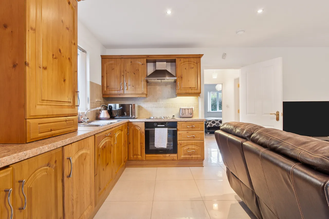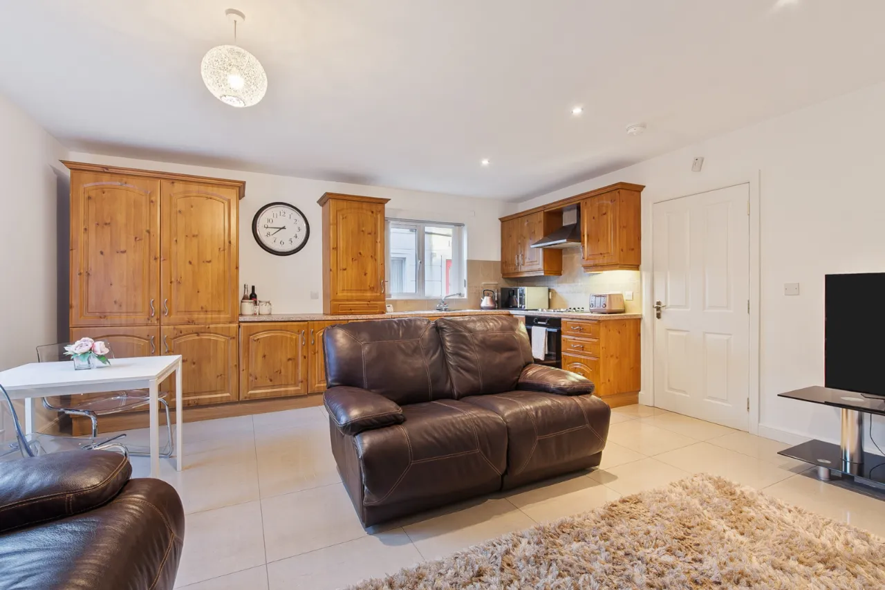 21 Downview Manor is a well-presented two-bedroom apartment offering bright, modern accommodation in a convenient and sought-after location. The property is accessed via a tiled entrance hall which leads through to a spacious open plan kitchen, living and dining area, ideal for both everyday living and entertaining.