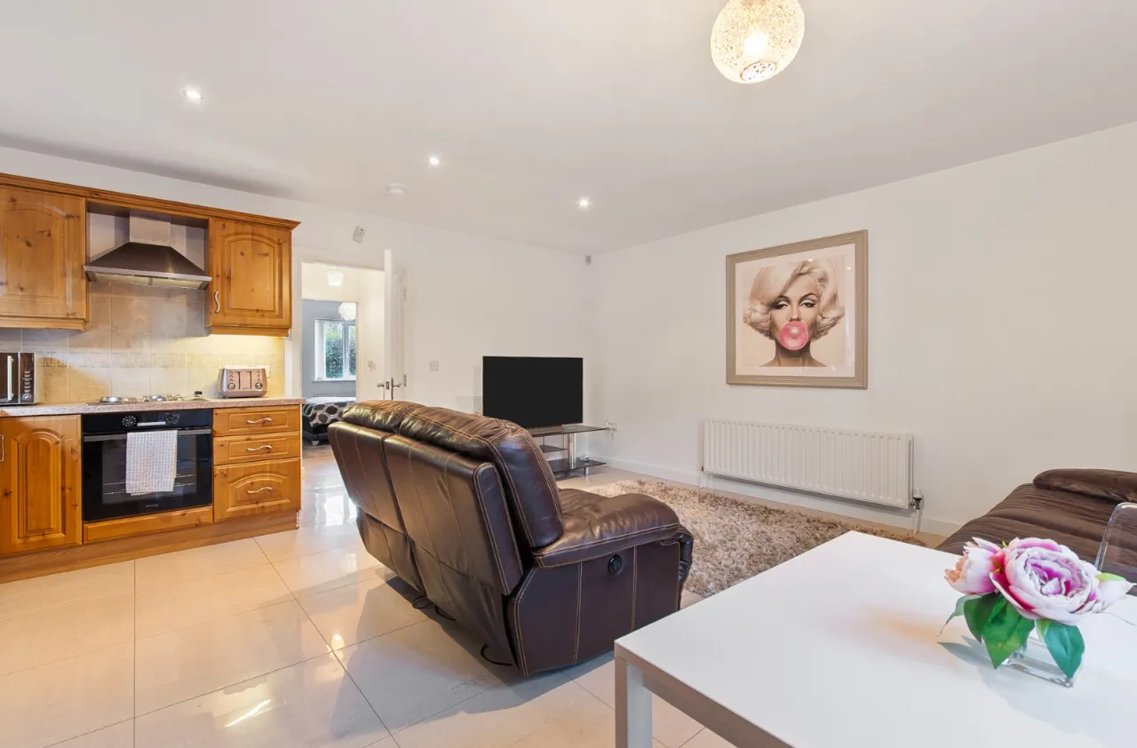 The apartment further benefits from a contemporary bathroom and two generously proportioned double bedrooms, both offering excellent space and natural light. Externally, residents can enjoy access to well-maintained communal outside space.
