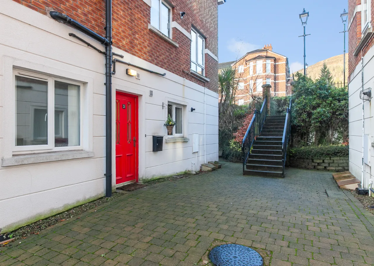 Communal parking and access to own front door. Views overlooking Cavehill.