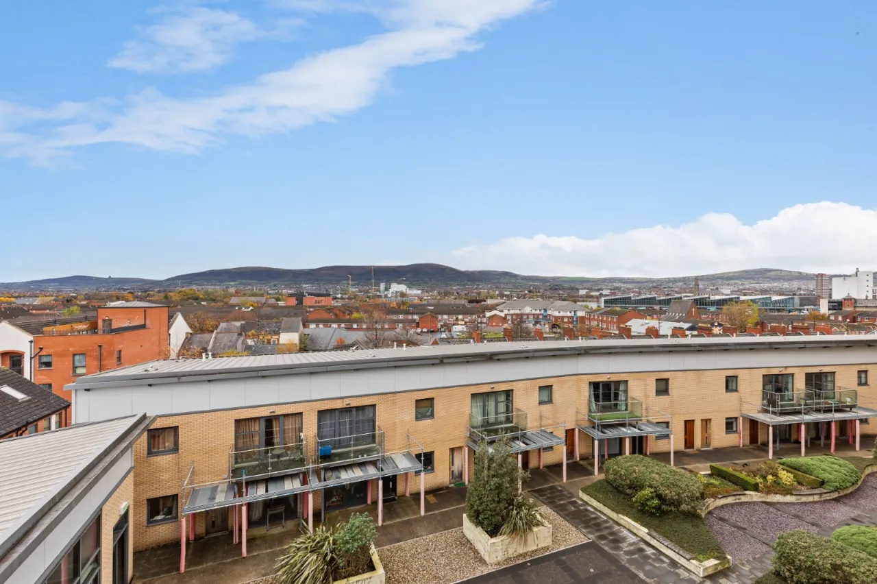 Spacious balcony with South-Westerly aspect enjoying views over the Belfast hills. Covered and gated residents car parking space.