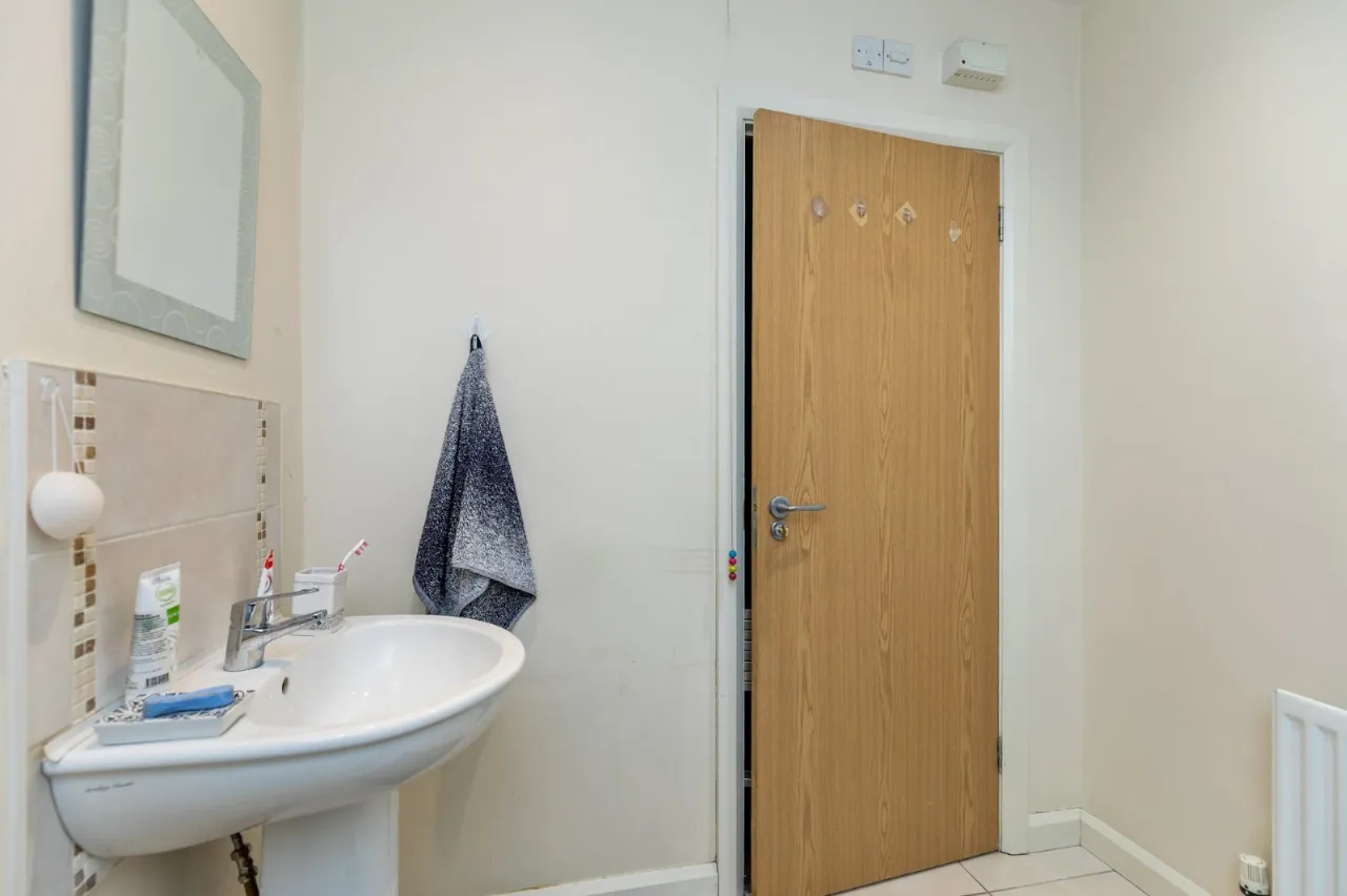 Comprises of enclosed corner shower unit with shower screen, pedestal wash hand basin with mixer tap, low flush WC, recessed lighting and Extractor fan.