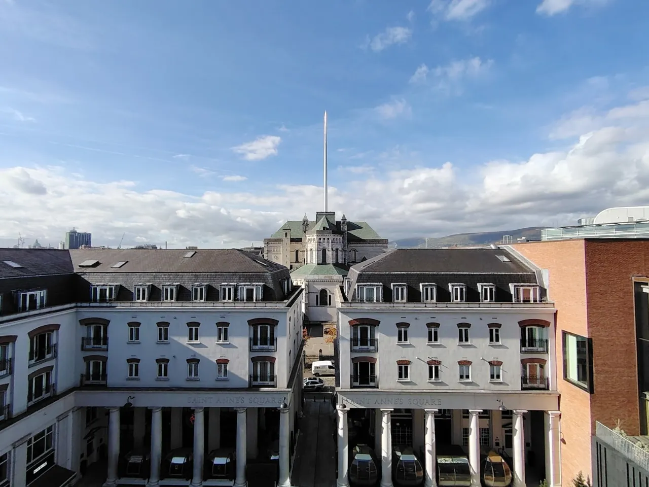 Generous living room with a fantastic outlook onto St Annes Square and the Cathedral