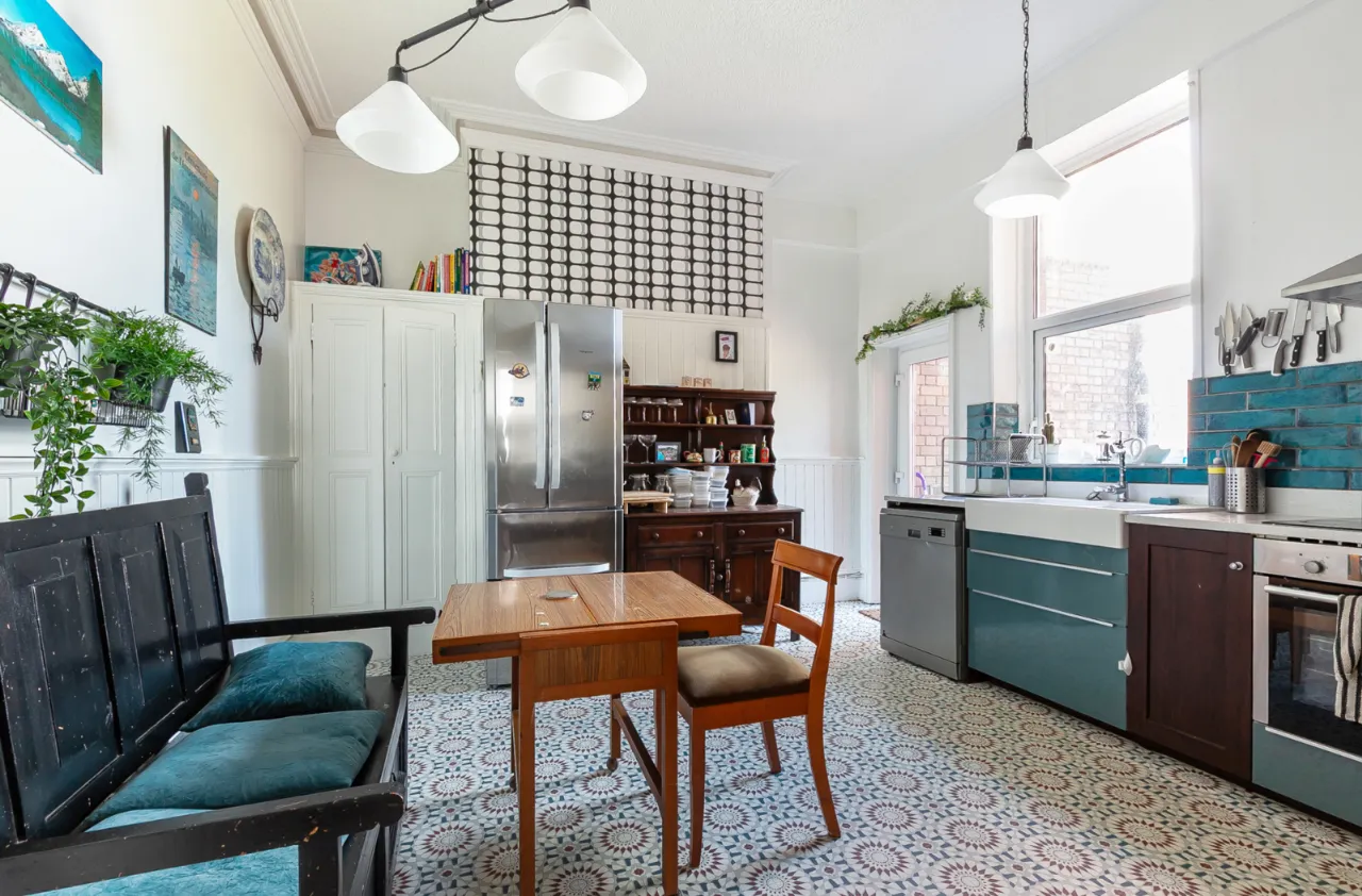Comprises of an excellent range of high and low level units and granite work tops. Double Belfast sink unit with mixer tap, four ring hob with under bench oven and overhead stainless steel extractor unit. Space for dishwasher, space for fridge and freezer, partly tiled walls, space for dining, corniced ceiling, bespoke pantry and access to rear.