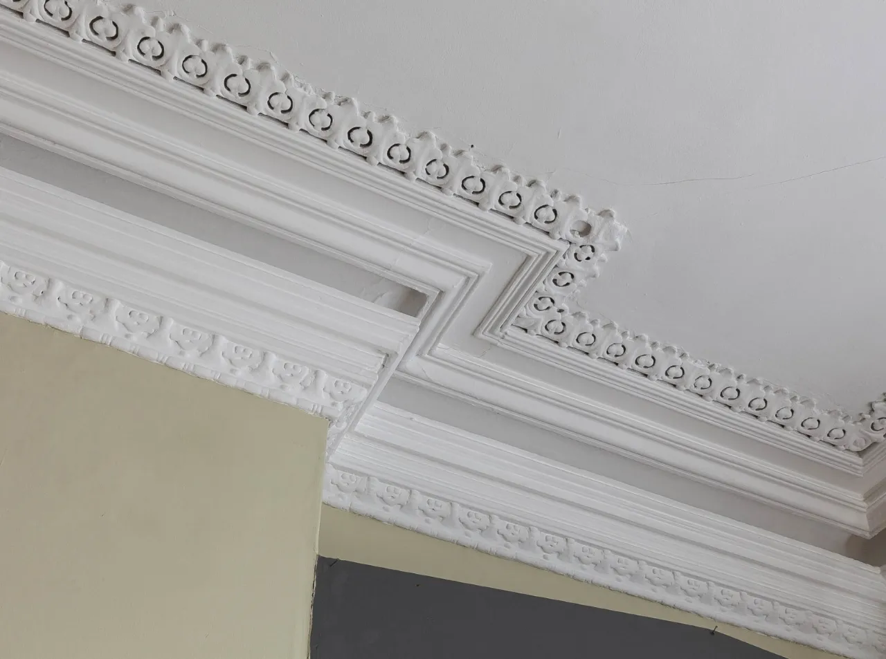 Corniced ceiling.