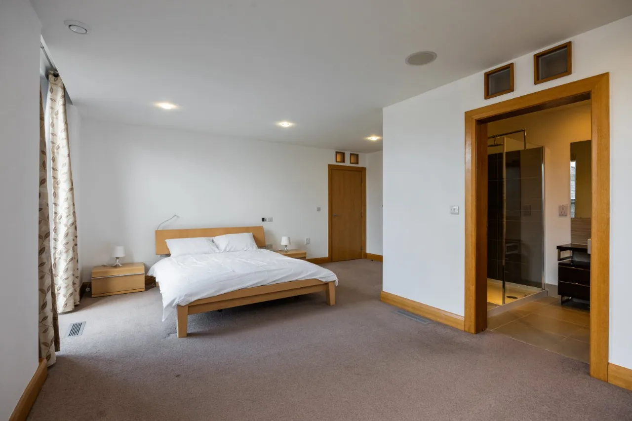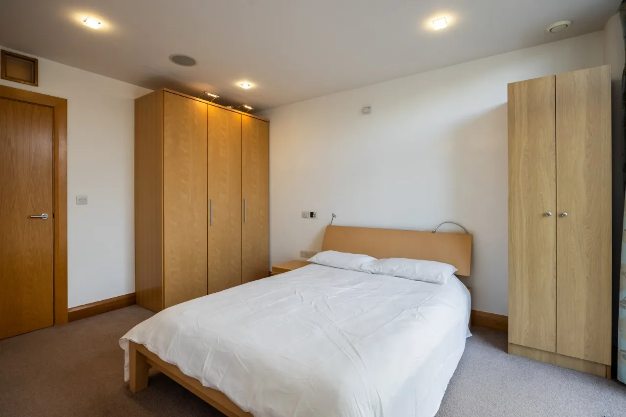 2 sets of modern built in robes, concealed Worcester Bosch gas boiler, recessed spotlightiing, ceiling speaker, full height Westerly facing window.