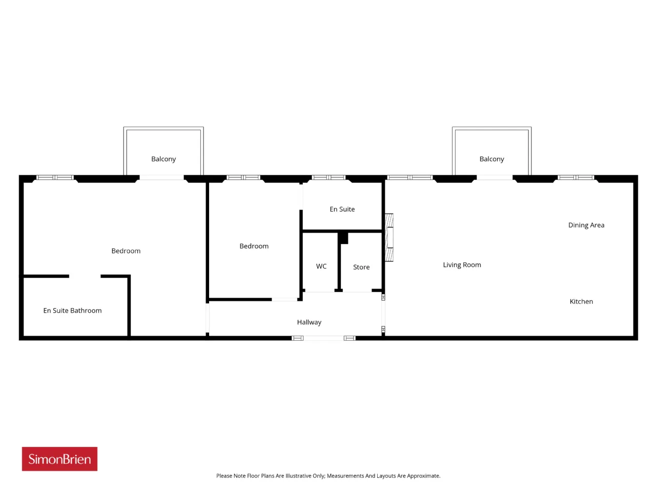 Range of modern Sliderobes, recessed spotlighting, ceiling speakers, 2 full height Westerly facing windows, French doors to Balcony.