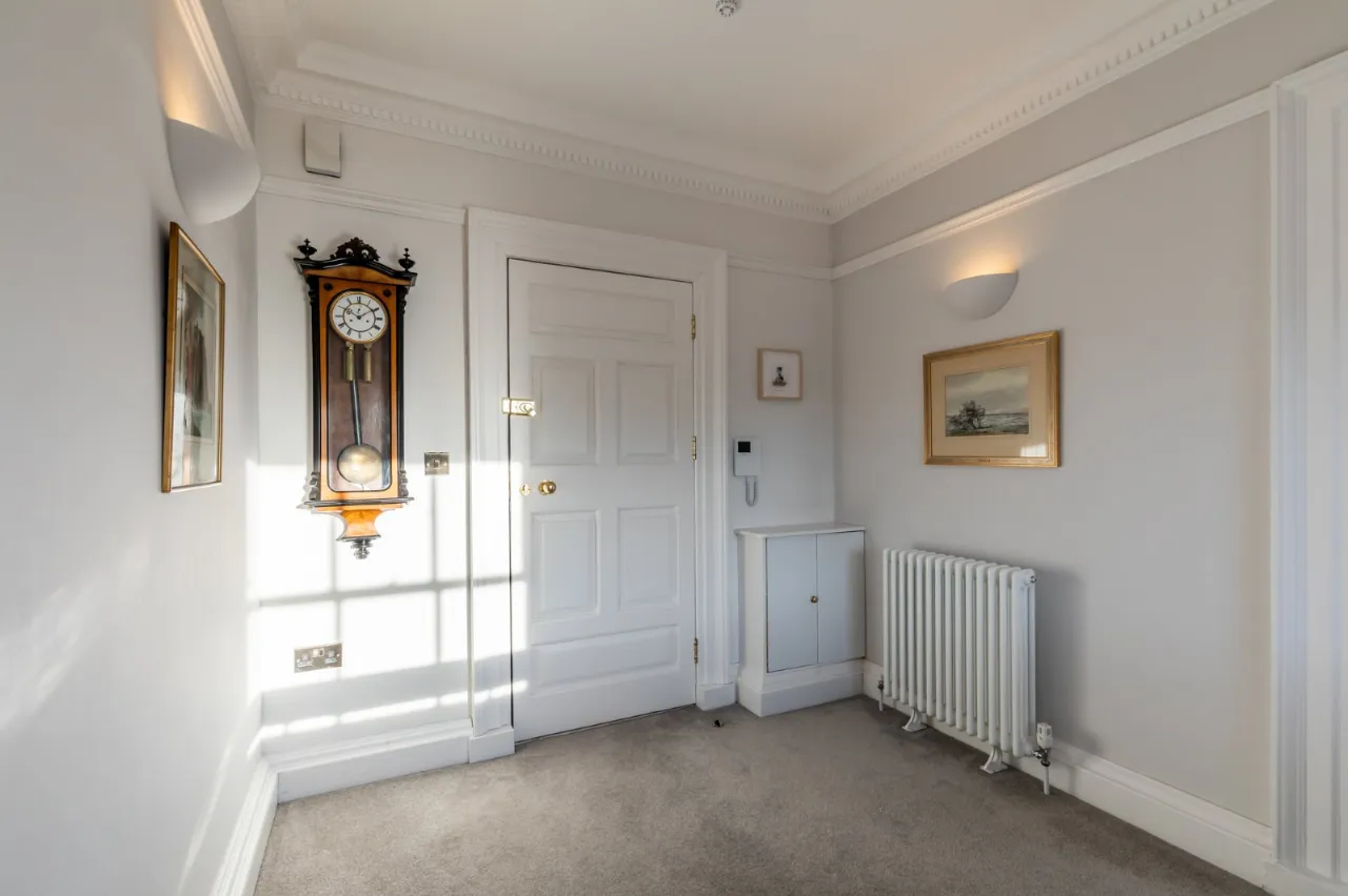 Corniced ceiling, picture rail, wall light points, intercom system, feature timber window surround.