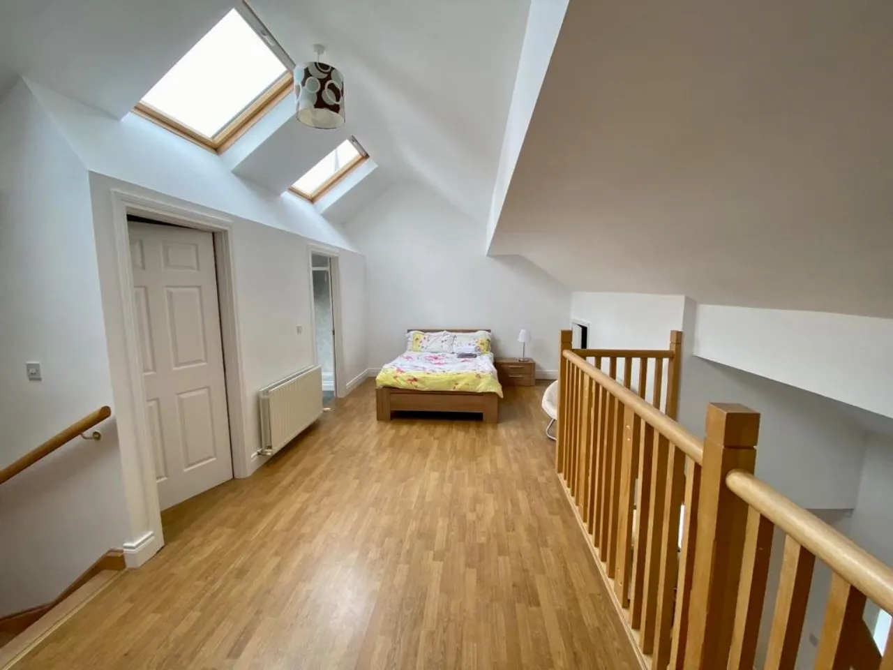Internally the property has superb accommodation over two levels including a large open plan living space with fitted kitchen and excellent range of integrated appliances. There is space for a large dining table for 6-8 people and from here there is an open staircase to the first floor mezzanine level and could be utilised as an additional living space or third bedroom. In addition there are a further two good sized bedrooms, principal bedroom with French doors to Juliet balcony and ensuite shower room as well as a main bathroom.