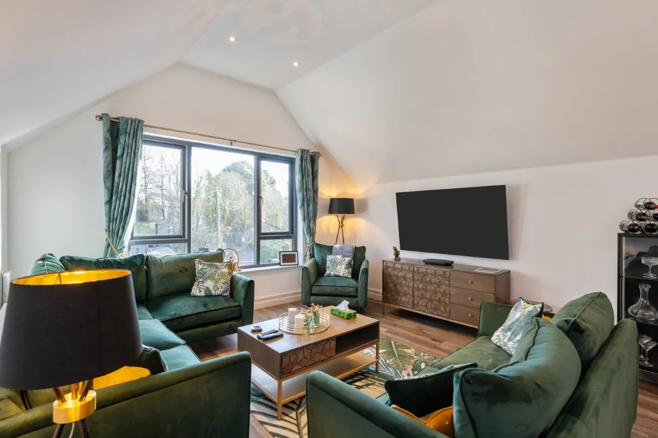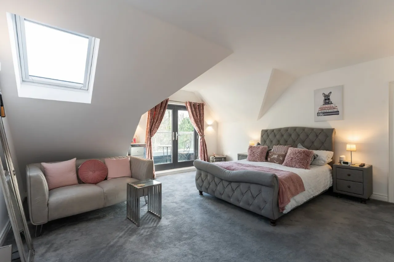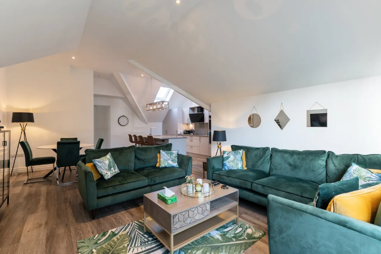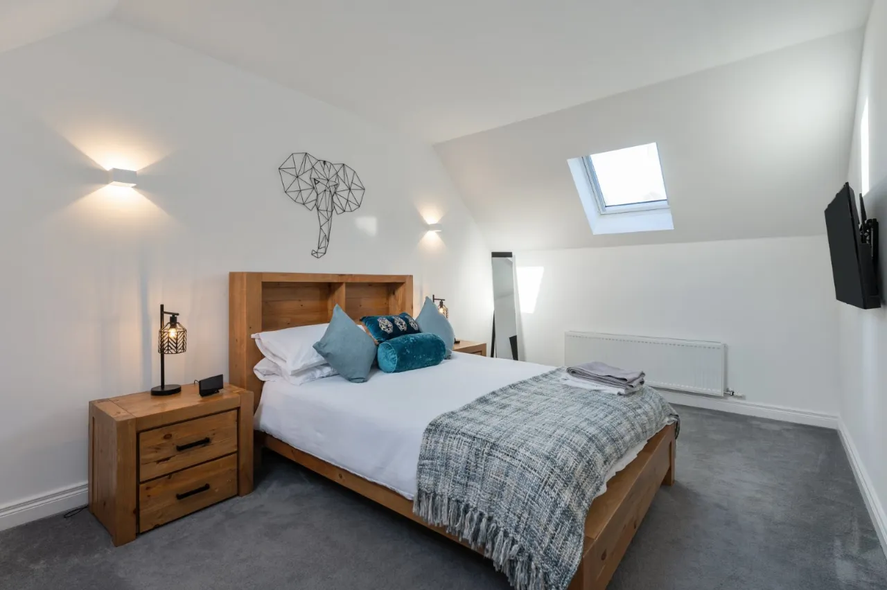 Range of high and low level units, quartz worktops, family island with inset sink, integrated fridge freezer, Worchester gas boiler, Hoover electric oven and combination microwave, Candy integrated dishwasher, 4 ring ceramic hob, Franke extractor fan, wooden floor, spotlights, velux windows