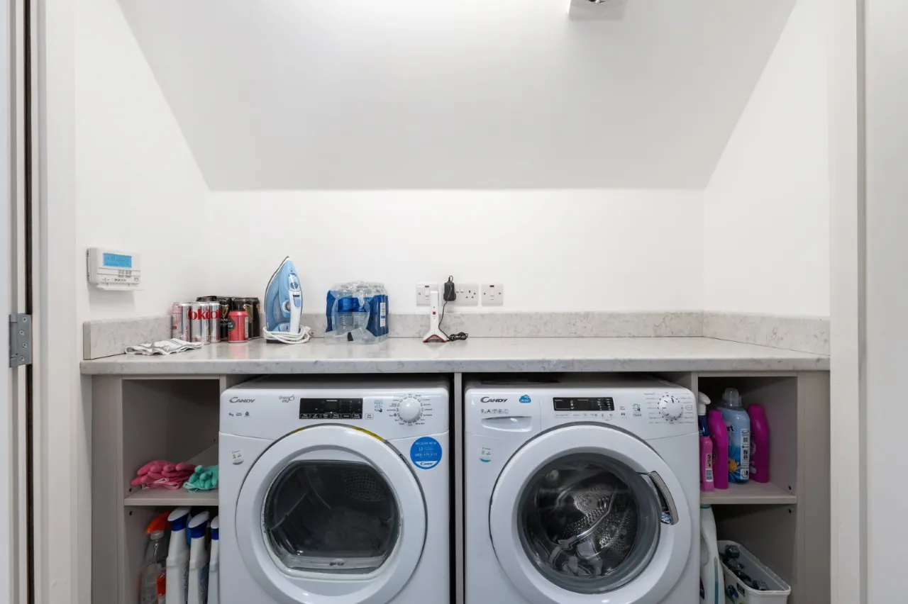 Storage cupboard, utility cupboard, plumbed for washing machine and space for tumble dryer