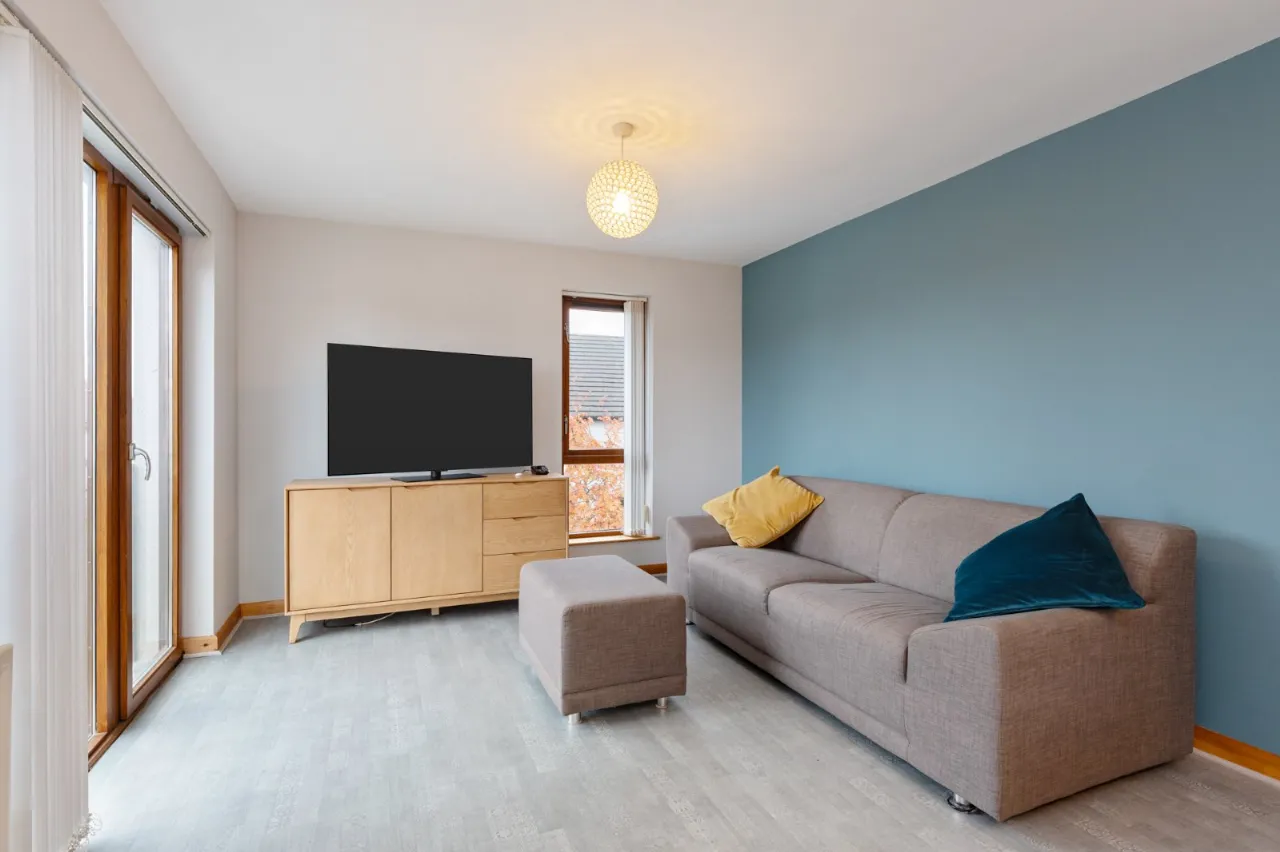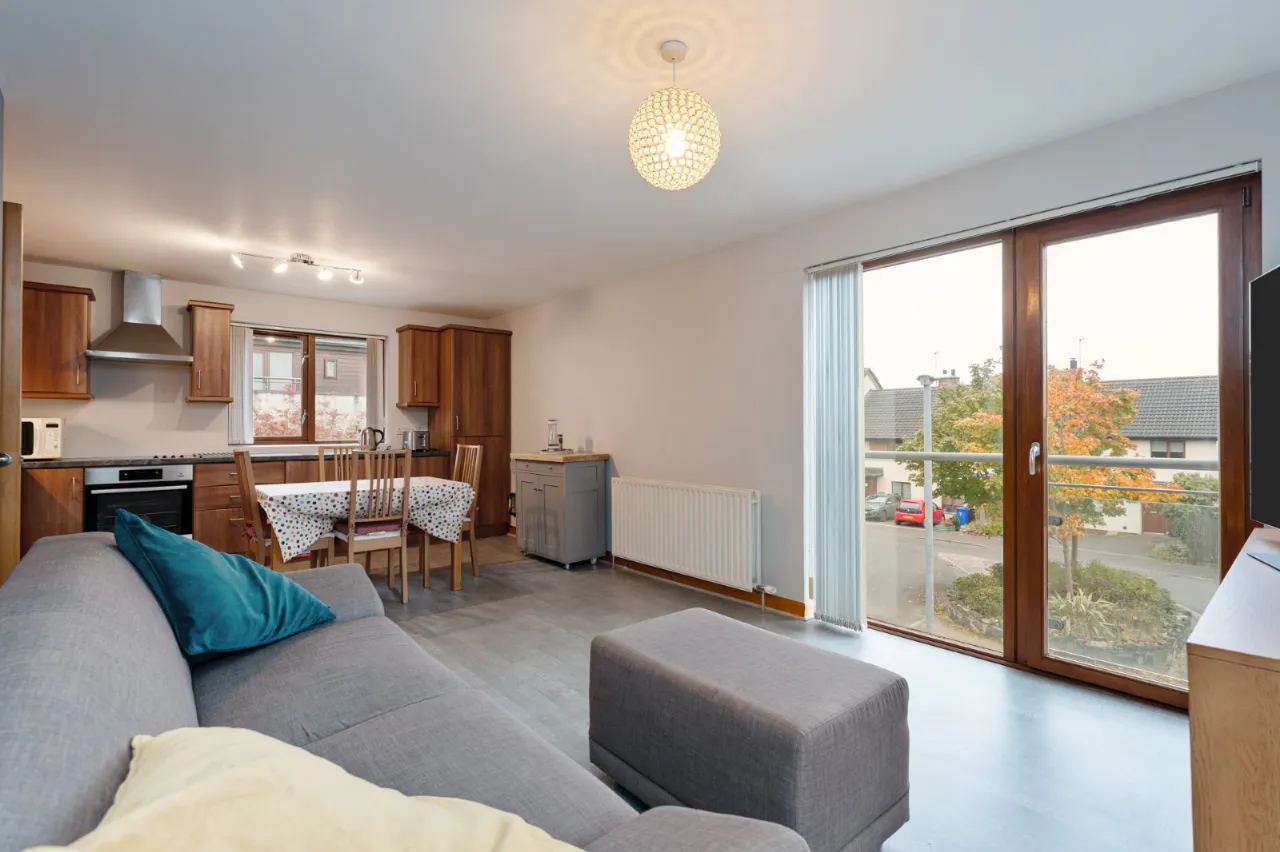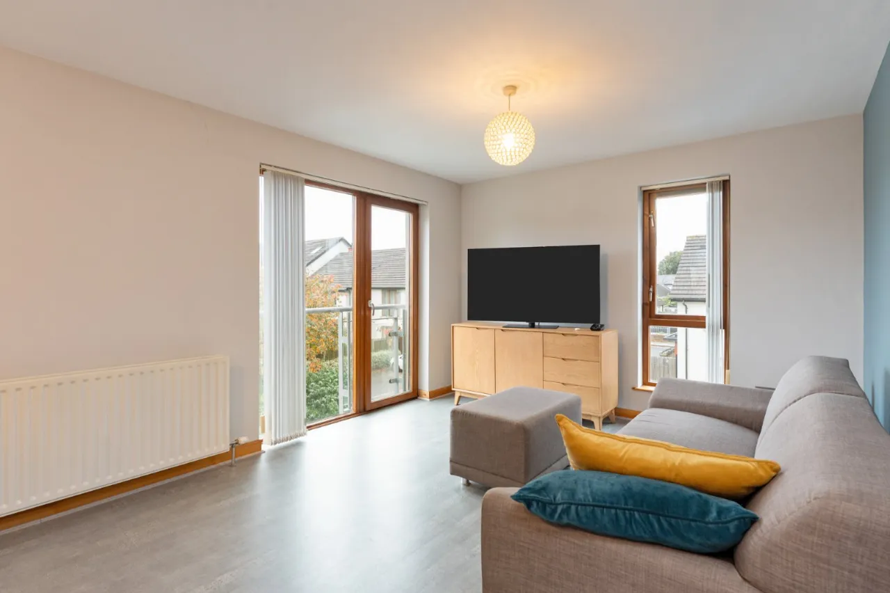 Living area with lots of natural light, Juliet balcony and views to Scrabo Tower