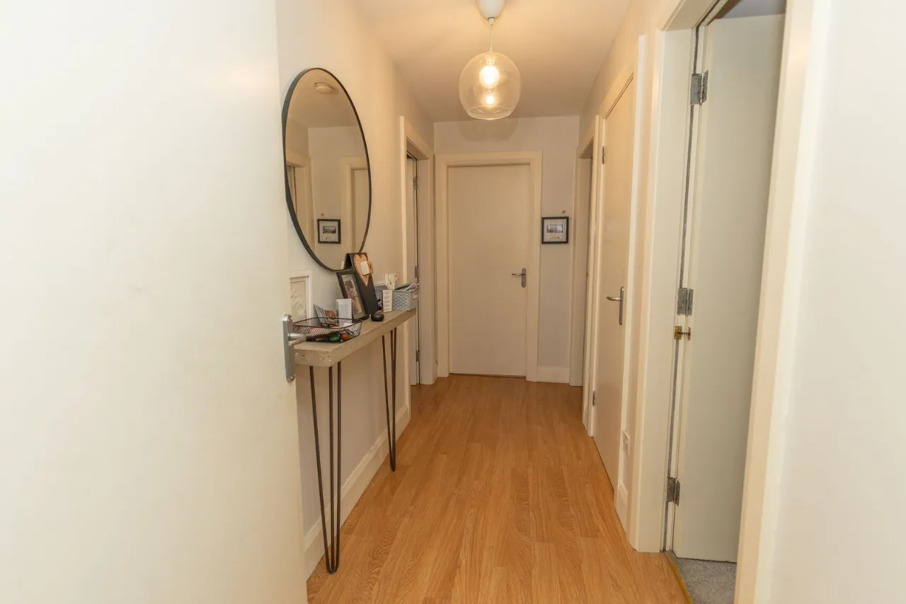 Laminate flooring. Recessed ceiling lights. Patio doors with Juliet balcony. Electric wall mounted fire.