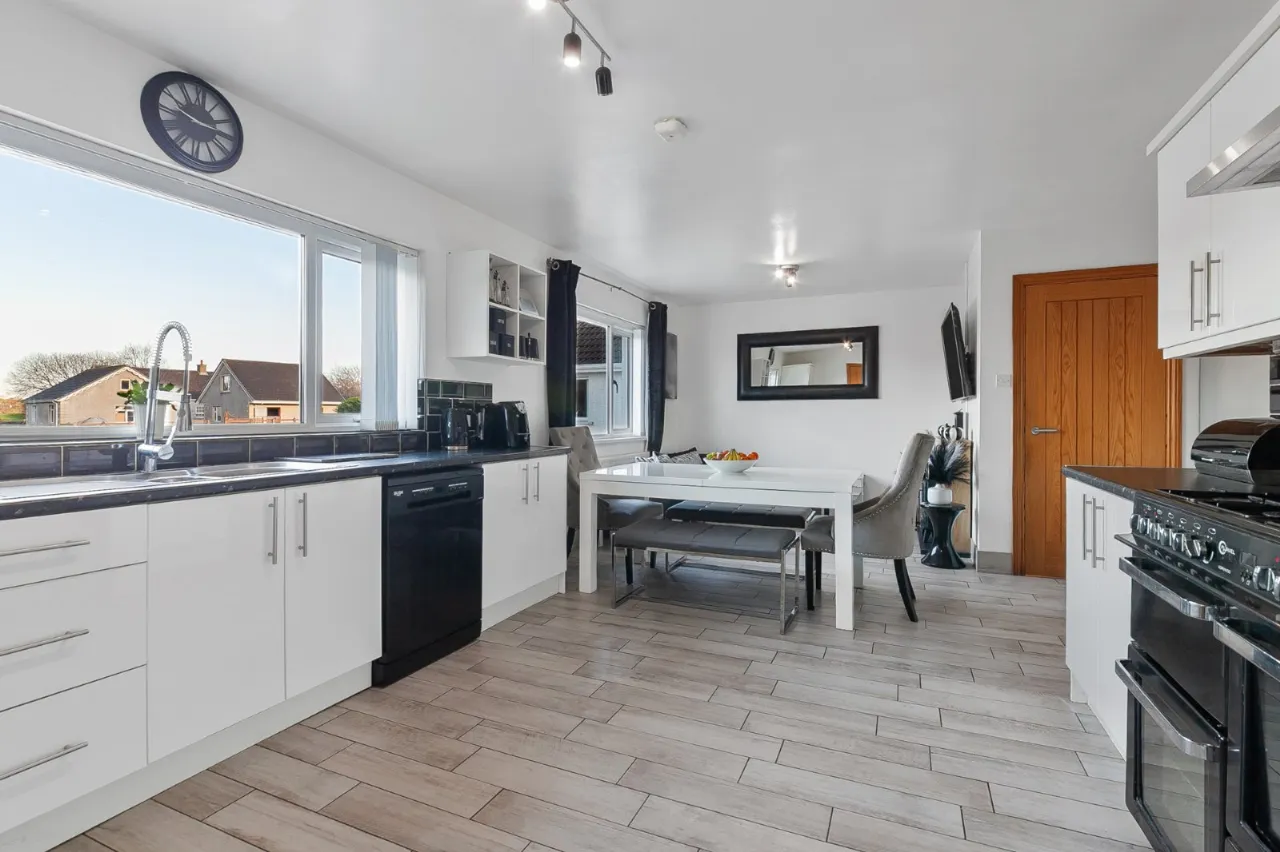 Modern kitchen with excellent range of units and built-in appliances. Open plan dining and family room.