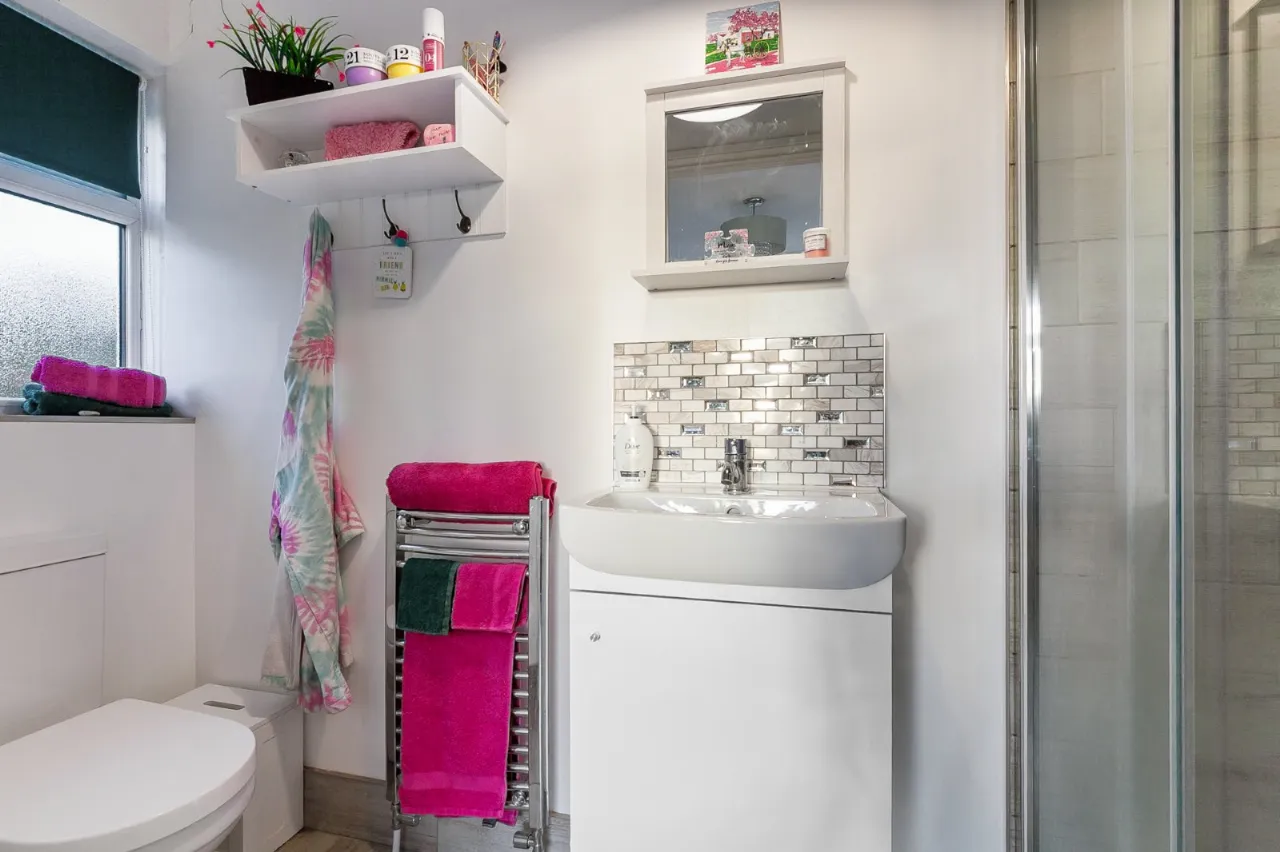 uPVC door to rear, plumbed for washing machine, oil fired boiler