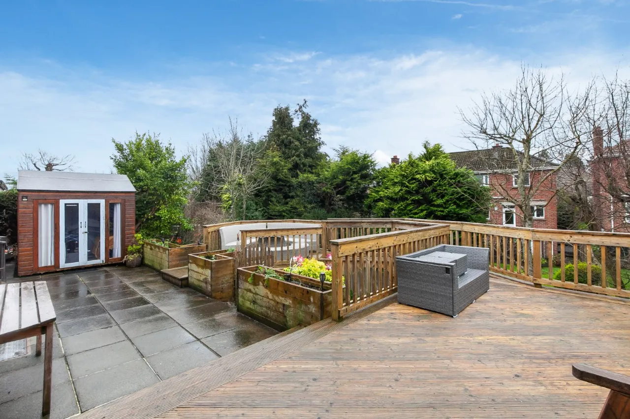 Pleasant Tiered Gardens to Rear with Garden Shed