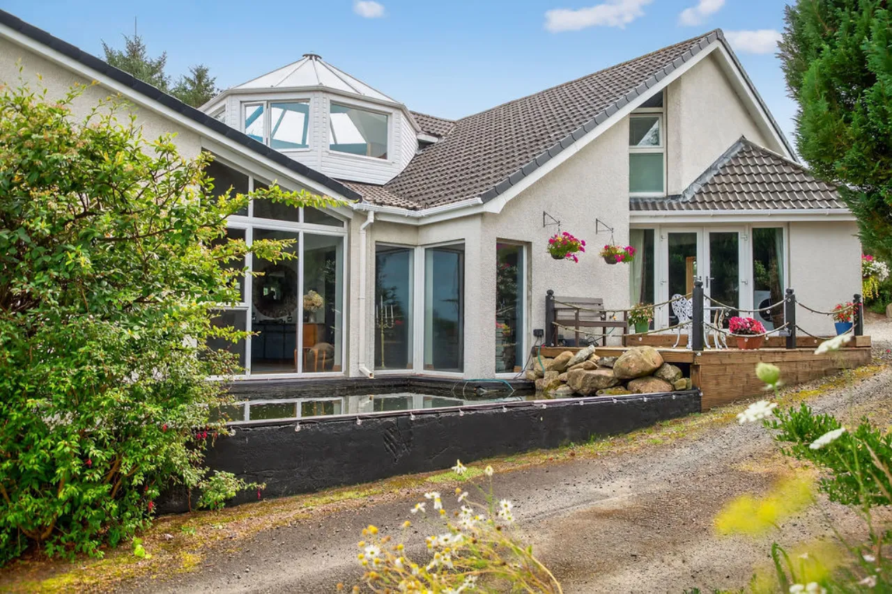 Ash Floor, views over fish pond, vaulted ceiling.