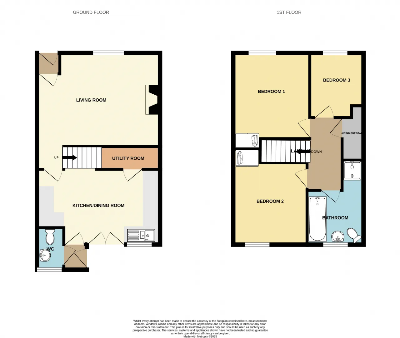 Finished with tiled flooring, comprising a white WC and wash hand basin, providing convenient ground floor facilities.