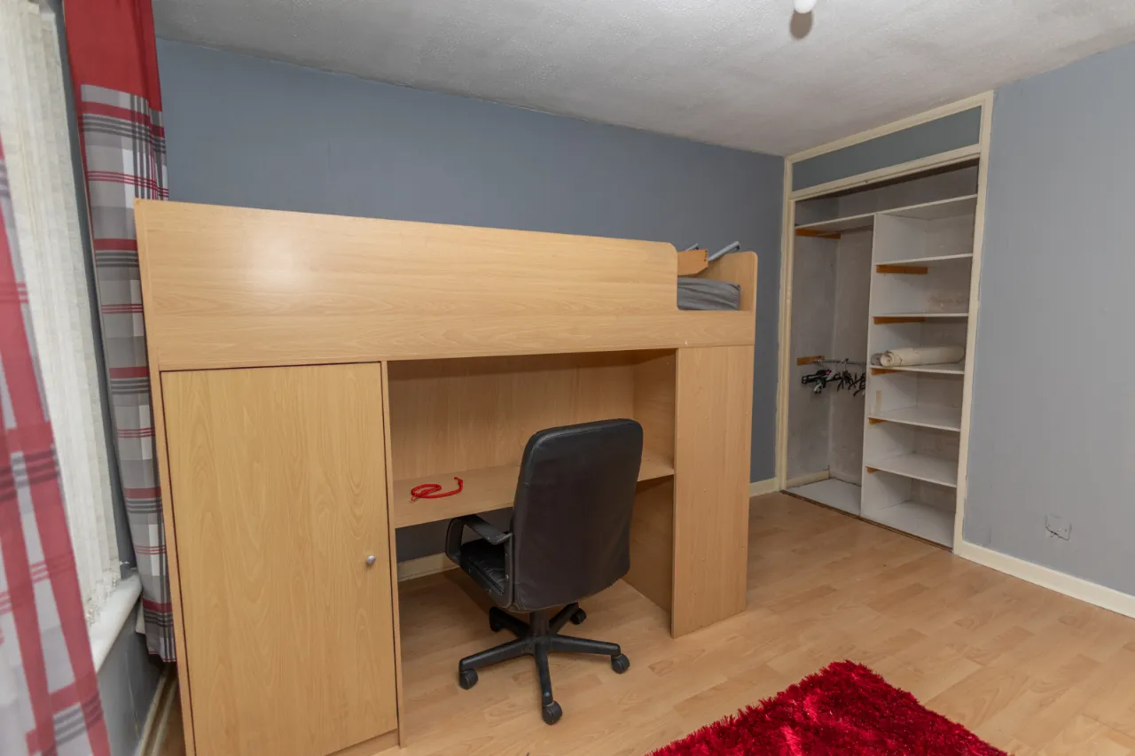 Laminate flooring, built-in storage, double panel radiator, and rear aspect window.