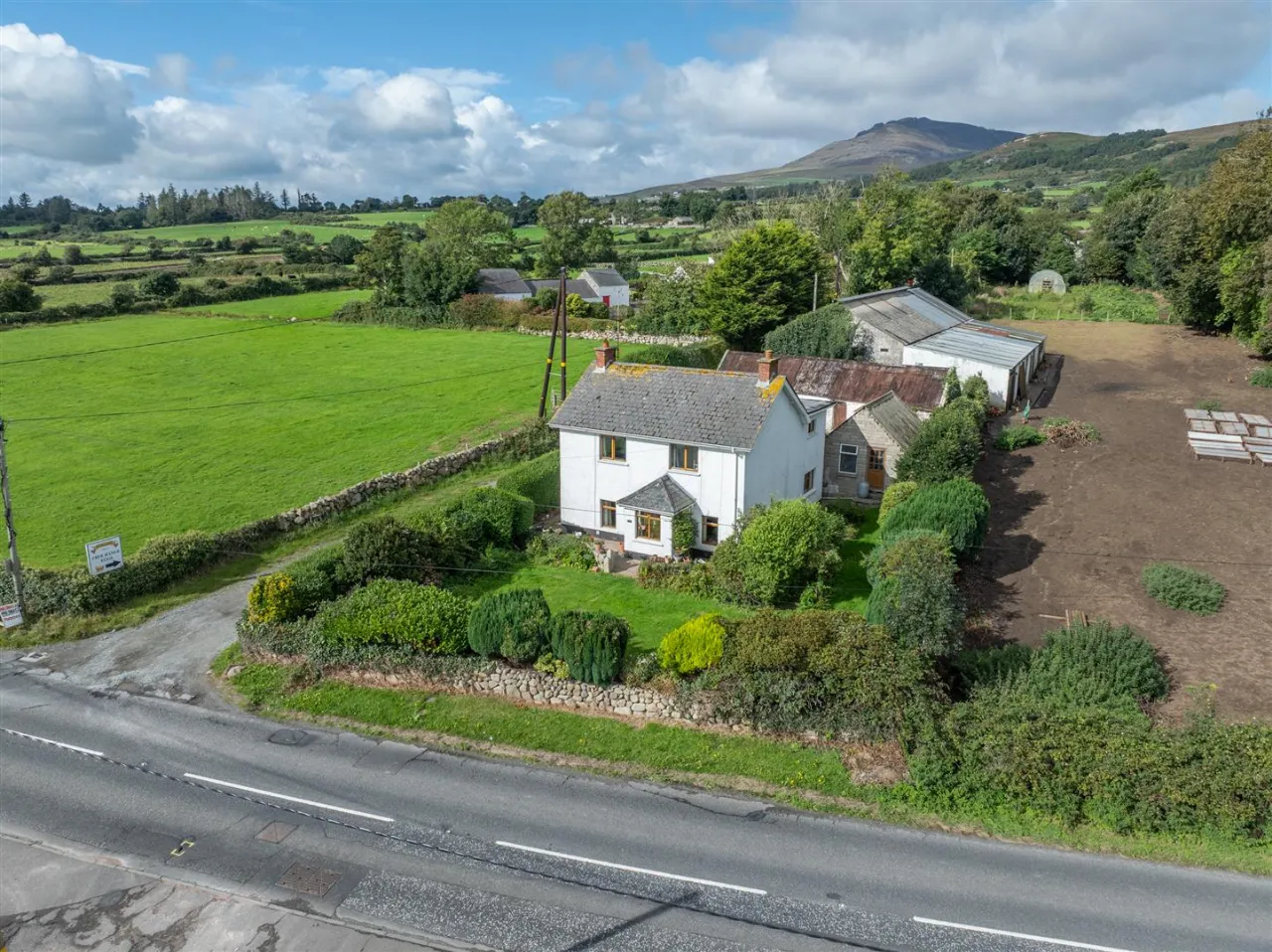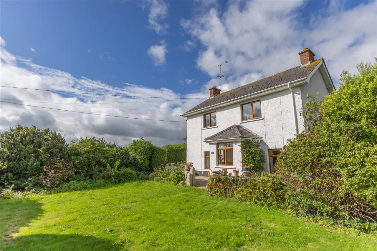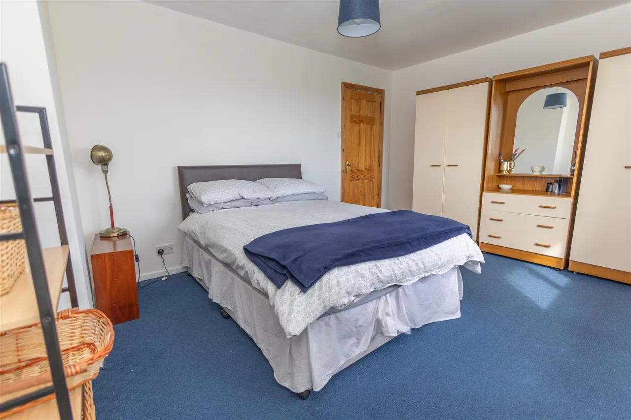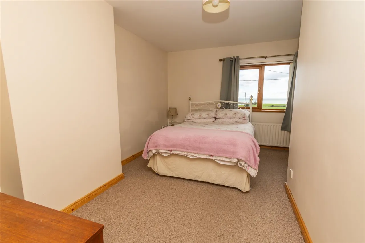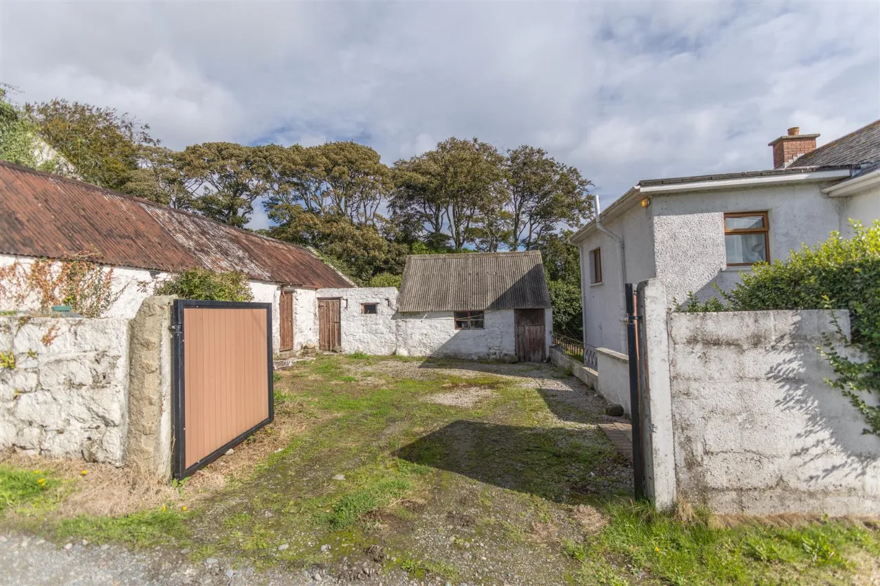 Sea views to the front with a lawned garden bordered by mature shrubs/hedging and a stone boundary wall. Brick-paved path and slabbed rear yard. Rear steps lead to fully enclosed off-street parking with gated access and a gravel parking bay. Useful outbuildings for storage.