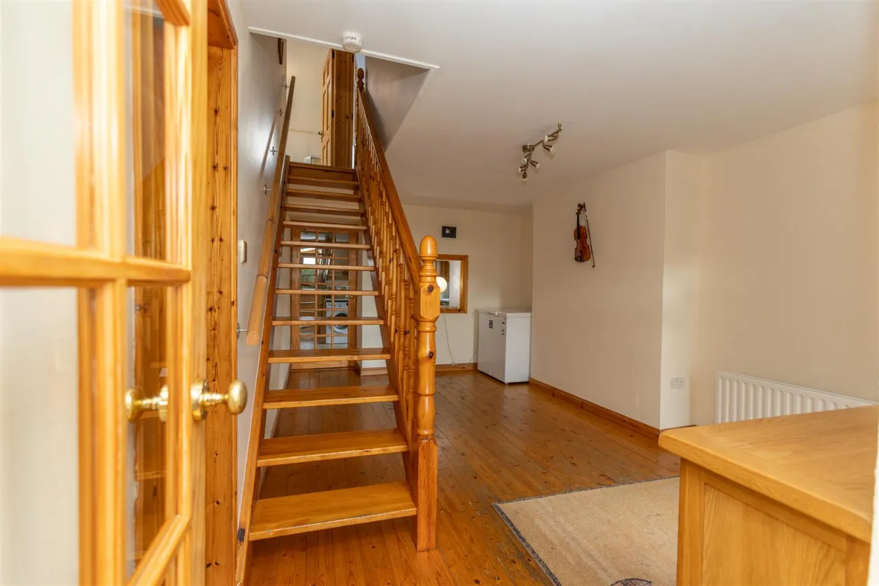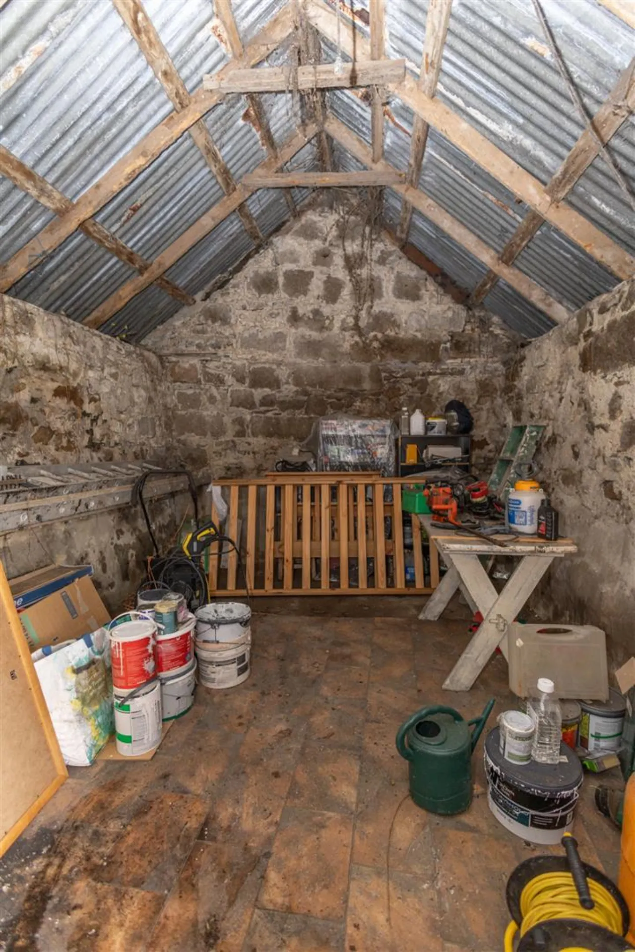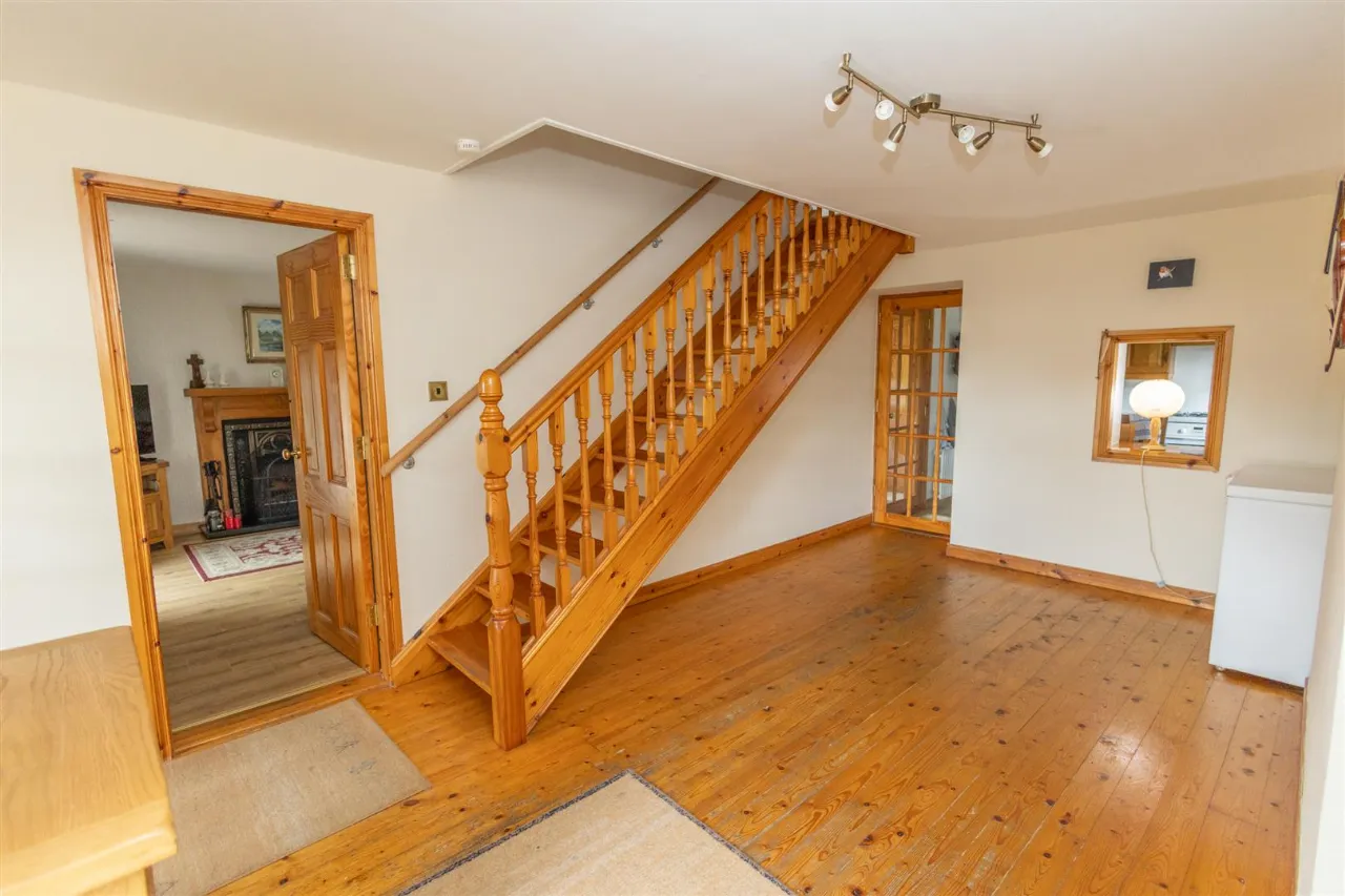 Solid wood flooring; hot water cylinder and fitted shelving.