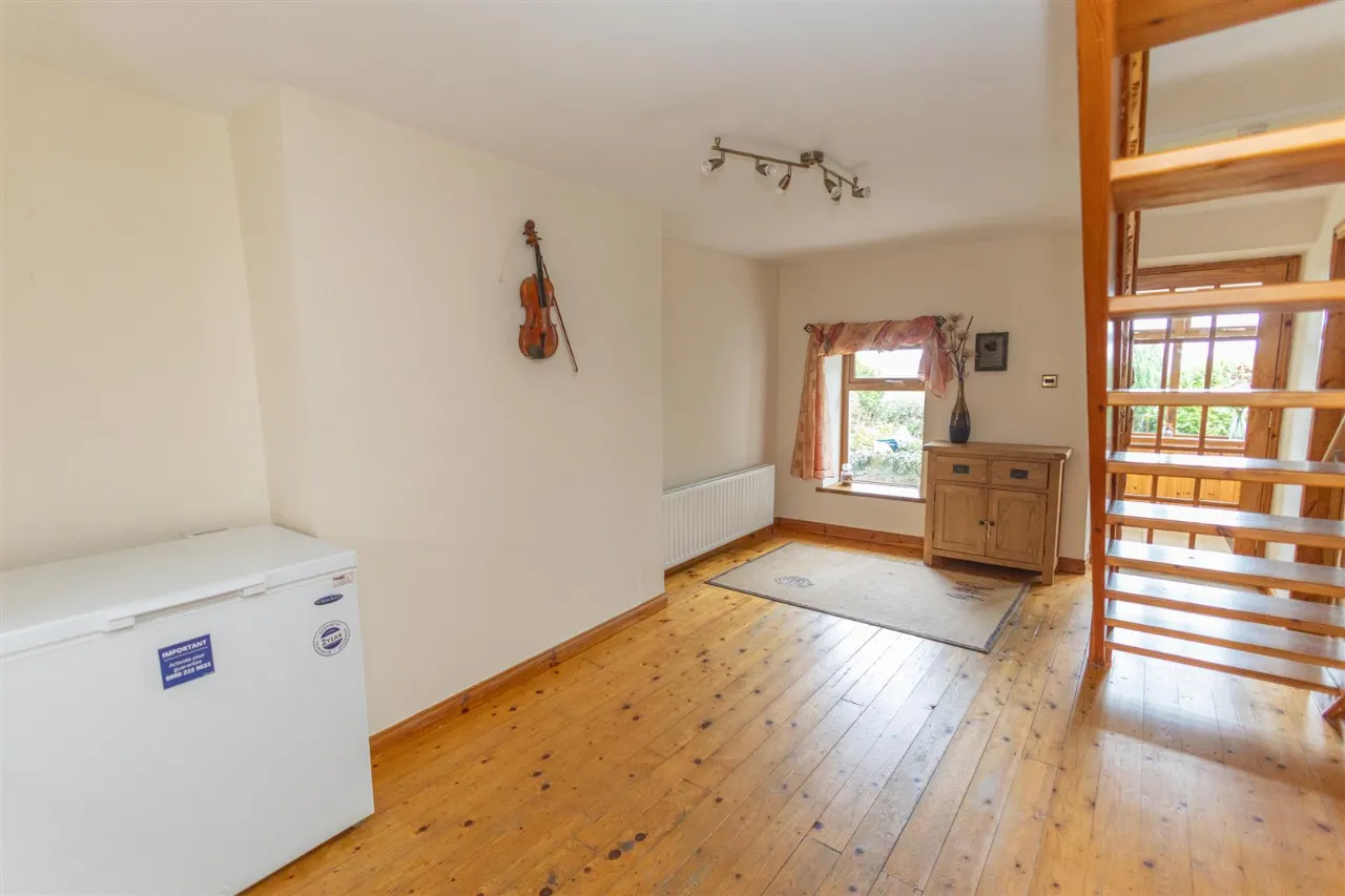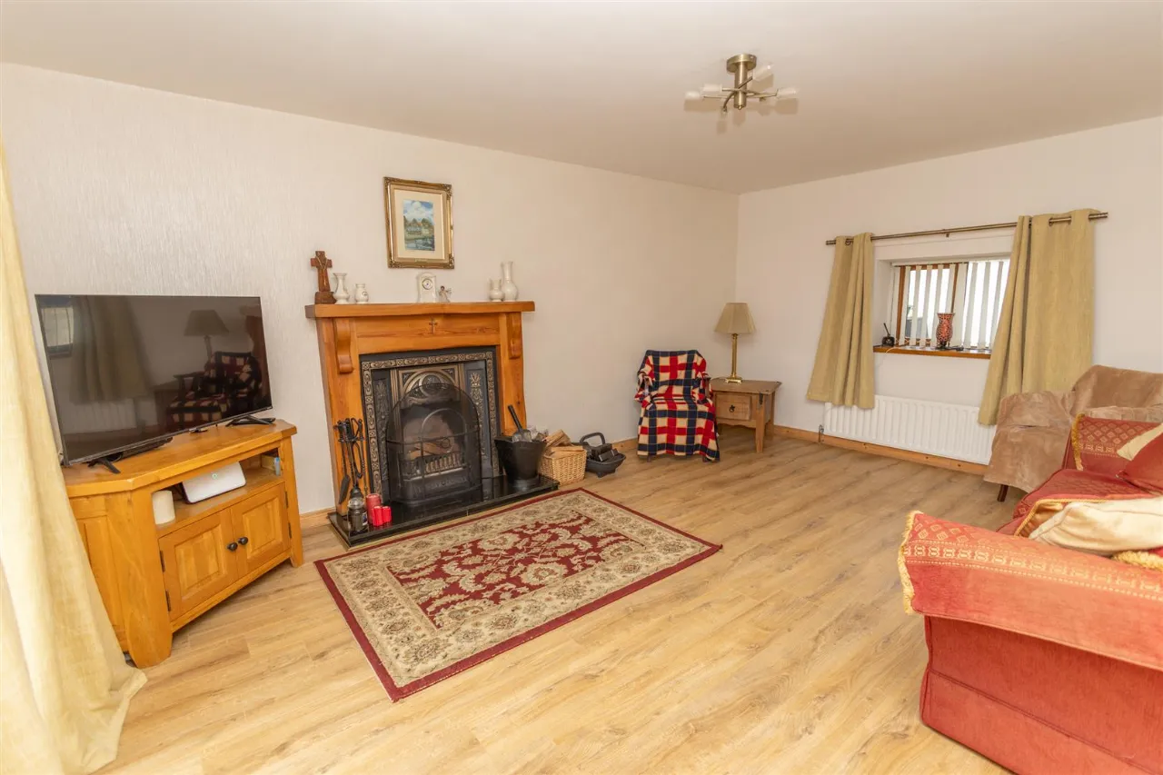 Laminate flooring; open fire with wooden surround, cast-iron insert and tiled hearth; one double and one single radiator; windows overlooking the front garden and rear yard.