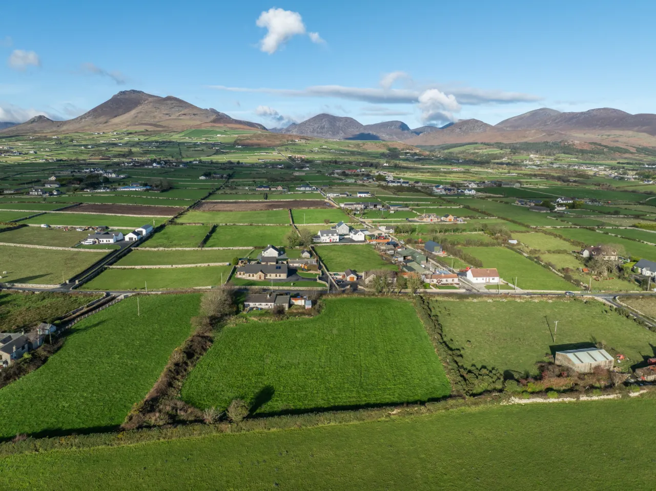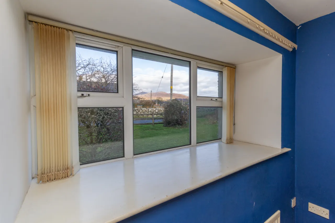 Living Room with carpet flooring, TV point, and front-aspect window overlooking the Mourne Mountains.