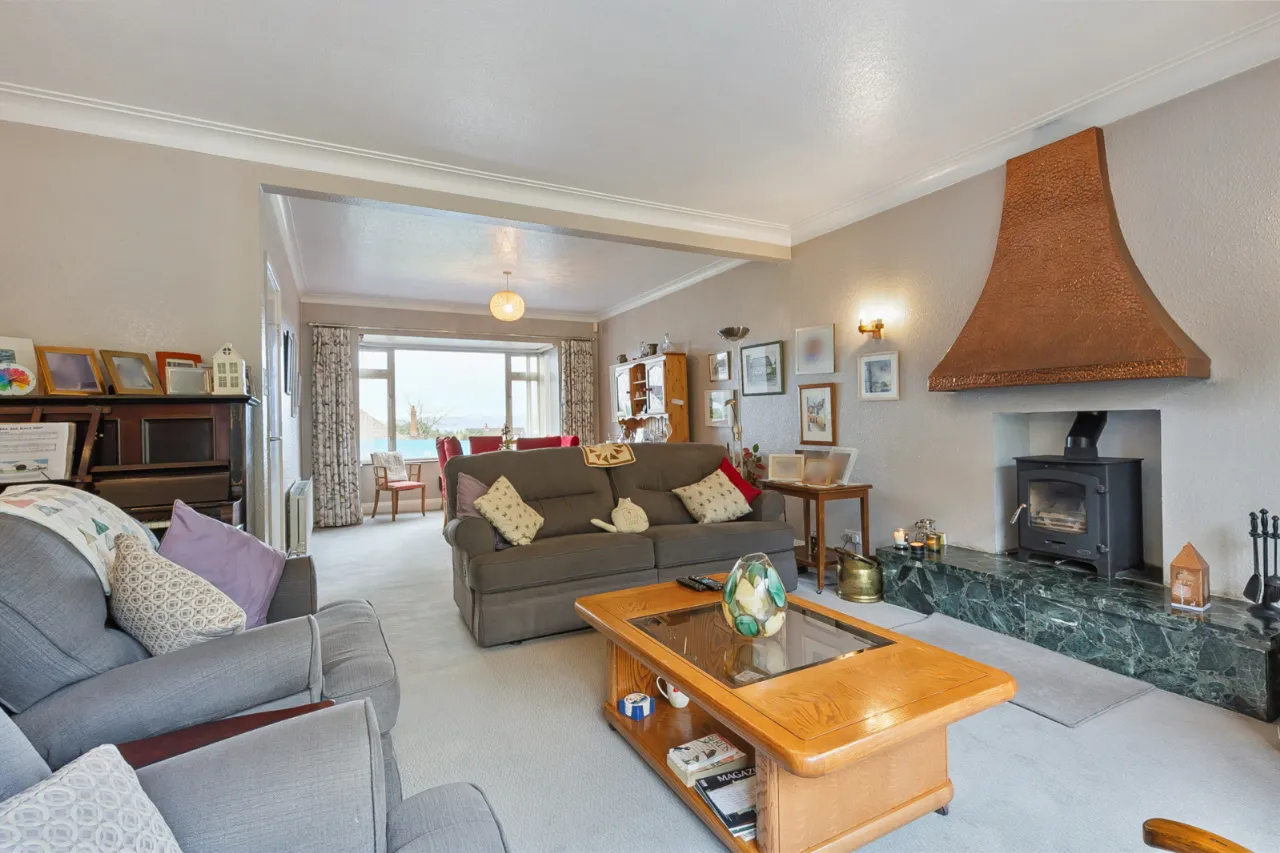 An array of natural light, feature wood burning stove and patio doors to rear garden.