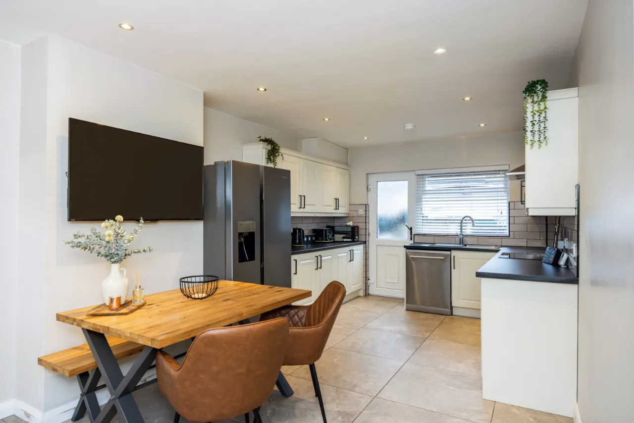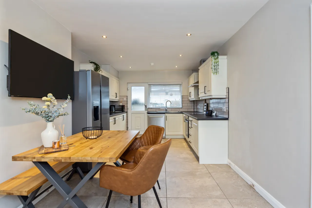 The property comprises a welcoming lounge, leading through to a kitchen open plan to dining area — ideal for everyday living and entertaining. Upstairs, there are three well-proportioned bedrooms along with a modern shower room finished in a white suite.