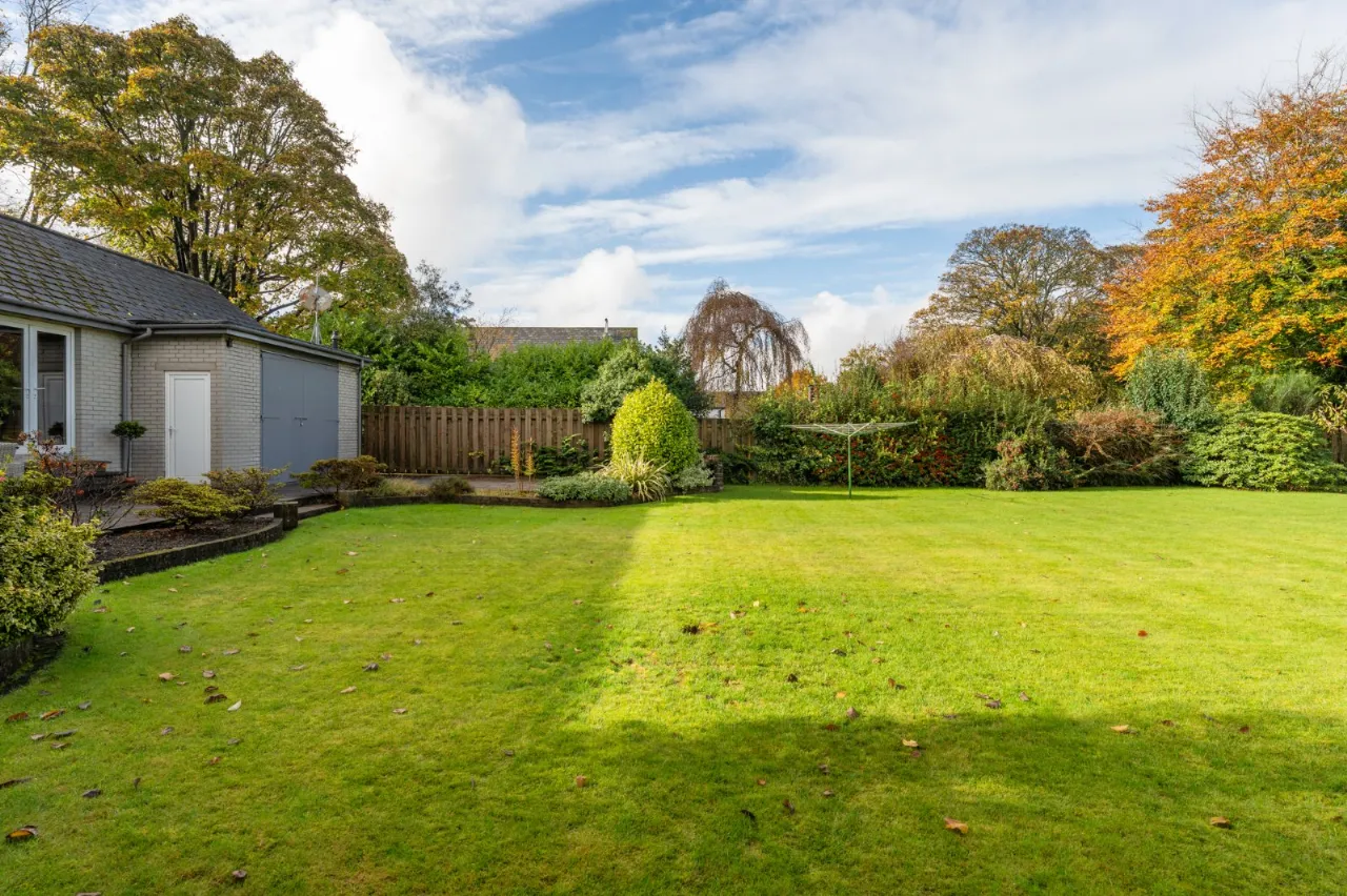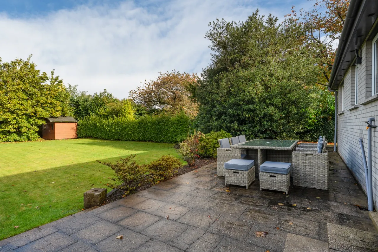 Large garden to rear laid in lawns, patio space, garden shed, water supply, mature boundaries and shrub beds, security lighting.
