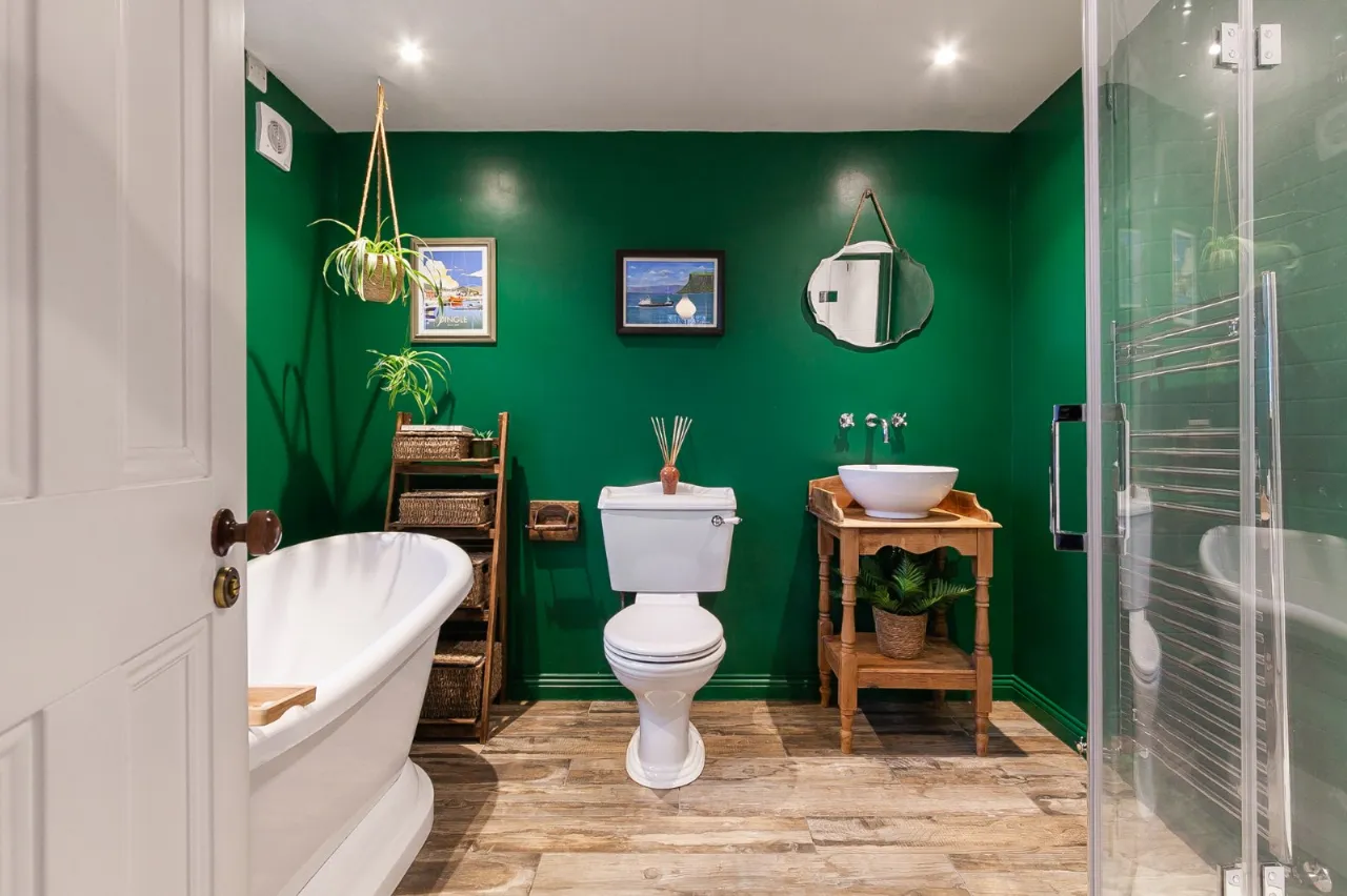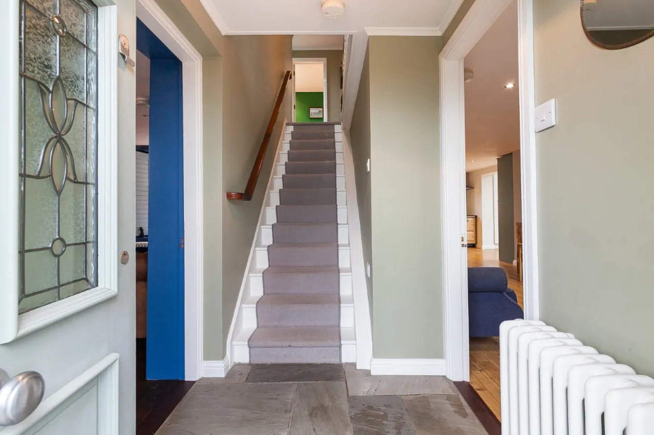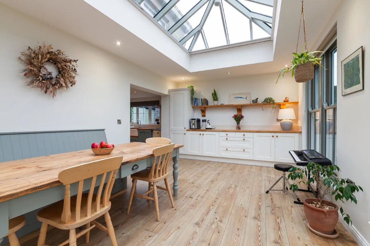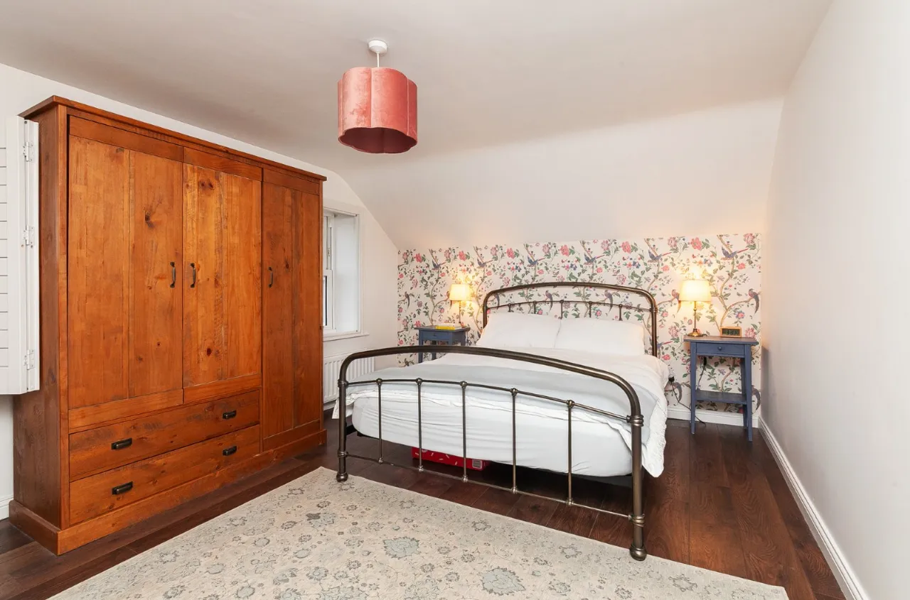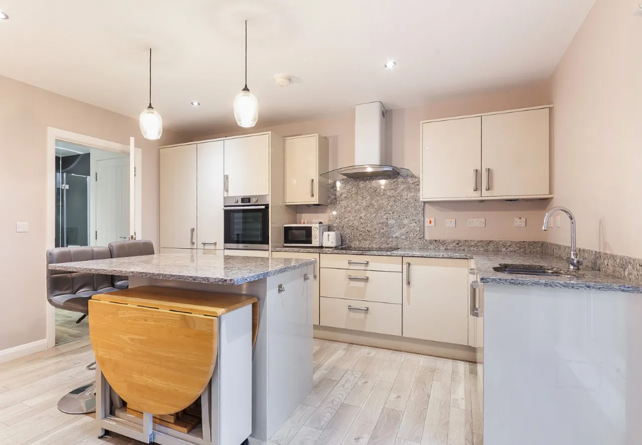 Contemporary kitchen with excellent range of units and integrated appliances. Access via folding wooden ladder to floored roofspace, ideal for additional accommodation if required (subject to statutory consents).