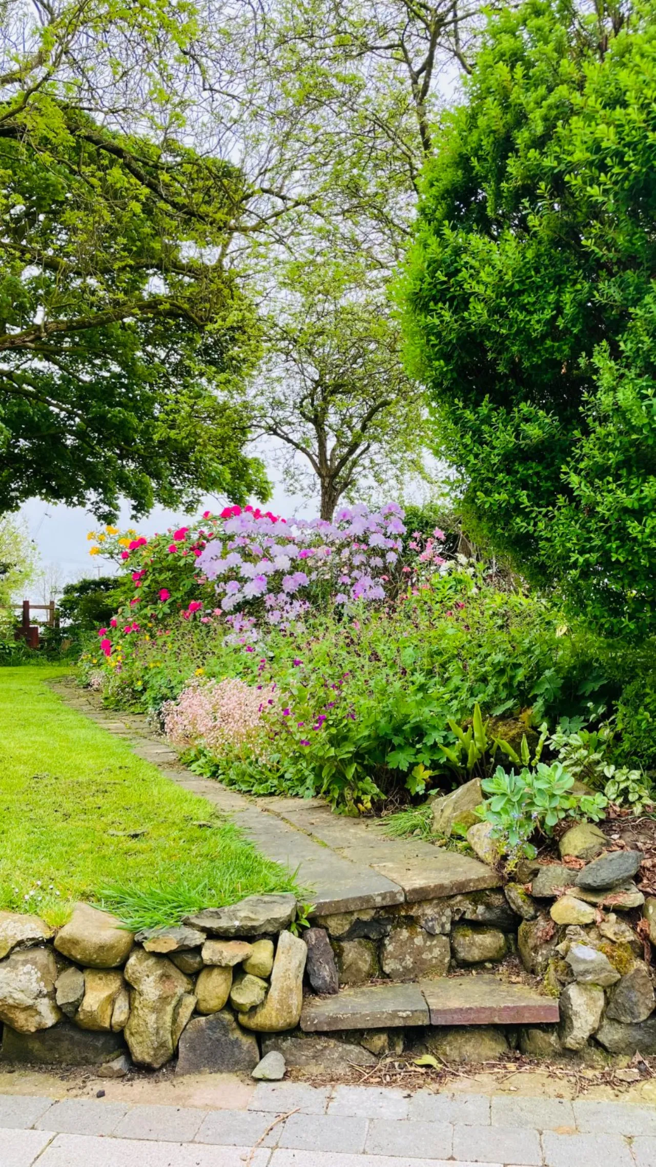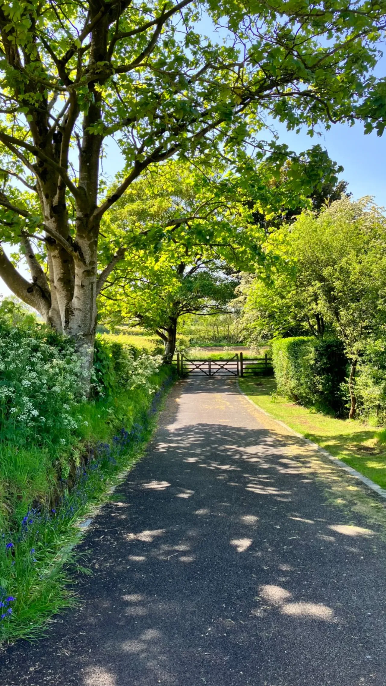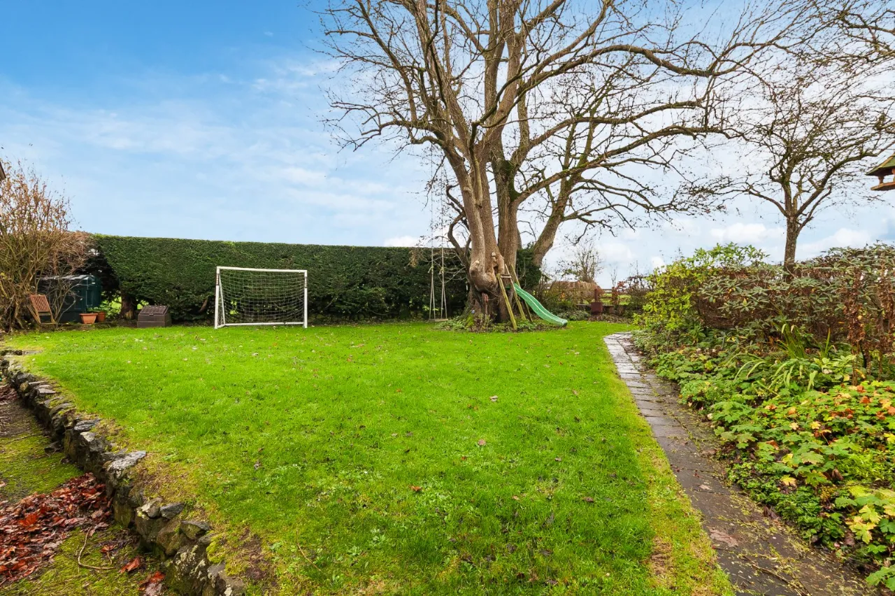 Entrance gates and laneway leading to ample parking and turning area. Front and rear gardens in lawns with mature plants, trees and shrubs. Garage, large garden store, outside toilet, wood store, and separate garden shed. Landscaped patio area and a delightful outlook over rolling countryside.