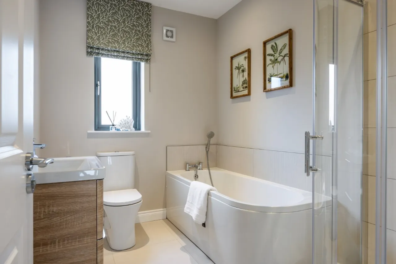 Ceramic floor tiling to kitchen, dining area, entrance hall, store, bathroom, ensuite, and WC