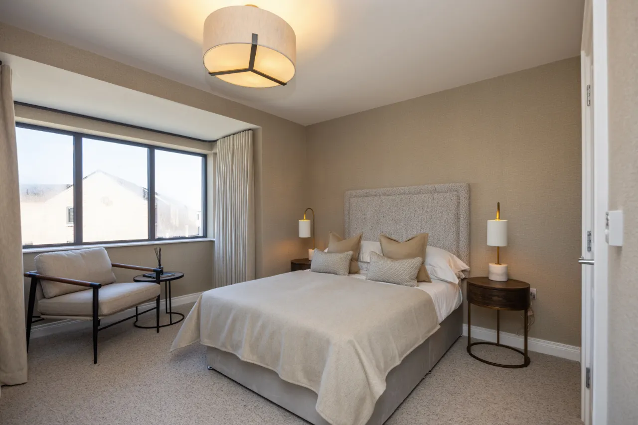 Construction built to PassivHaus LEB standardSolar PV panels on roof as standard. Additional battery storage upgrade option in future if required.Locally produced brick or rendered facades. Feature lighting to front & rear doors. Grey triple glazed windowsSeamless aluminium gutters. Black front door with 5-point multi-lock system. UPVC downpipes. Flagging to paths & patio. External power socket which can be converted to EV charging point. External water tap to rear gardenBitmac driveways. Lawns turfed to front and rear garden areasLandscaping plan to include plants & trees (where applicable)