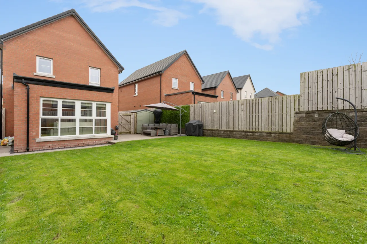 Garden laid in lawn, ample driveway for off street car parking to front. Garden laid in lawn with paved patio area ideal for outdoor entertainment, mature plants and shrubs outside water tap, outside light to rear. External soffit lights.