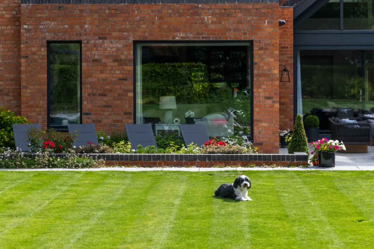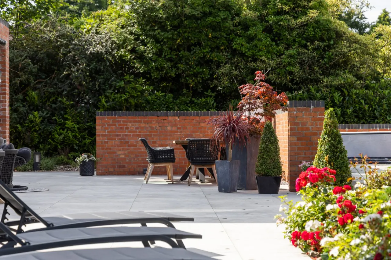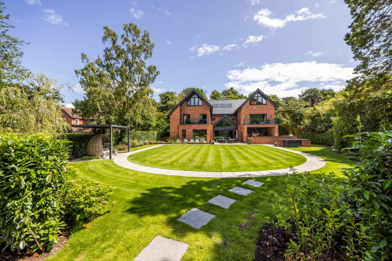 Granite tiles with access points to left and right of front driveway, wide enough for car and trailer down left hand side with double entrance gates, footlighting, mature hedging and stoned garden areas which leads to a large back terrace which has a fantastic entertaining space off the kitchen. Sliding door that opens to outside living room with lighting, fully glazed gas fire overlooking rear gardens and there is also an enclosed BBQ area leading to concertina windows that lead into entertaining area inside. Plumbed for sink, water provision, large built in area for BBQ, gas fire, outside lighting, outside speakers which leads into party room inside. Outside dining space with footlighting, built in half wall with power points. Sun areas in front of the living/dining/kitchen. Steps up to large level lawn which has easy access to hot tub with built in speakers and footlighting. Surrounding the lawn are colourful flowerbeds, specimen trees and hedges which gives privacy. Properly treated grass. Pathway amongst the lawn leading to all weather astroturf. Lighting amongst trees leading to wellness centre/home office with wood effect floor, sliding doors to front and window to side, heating, power door to low flush wc, glazed door leading to sauna overlooking rear gardens and putting green. Garden tool shed / storage to the rear.