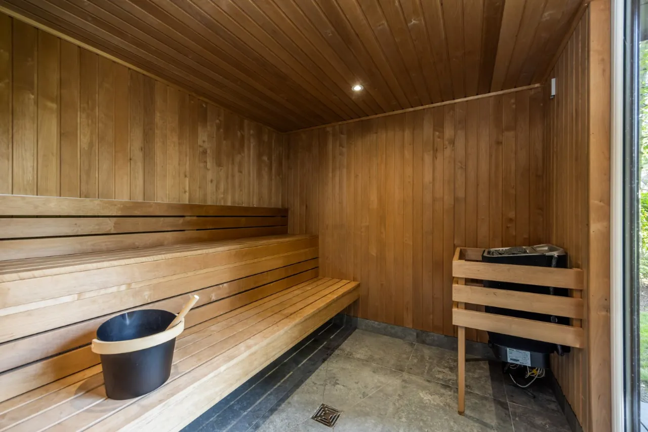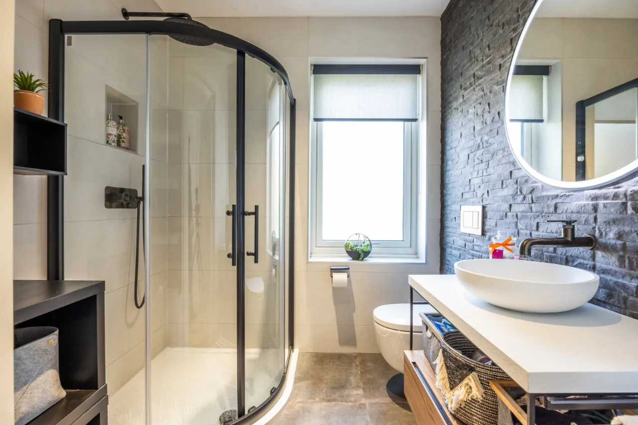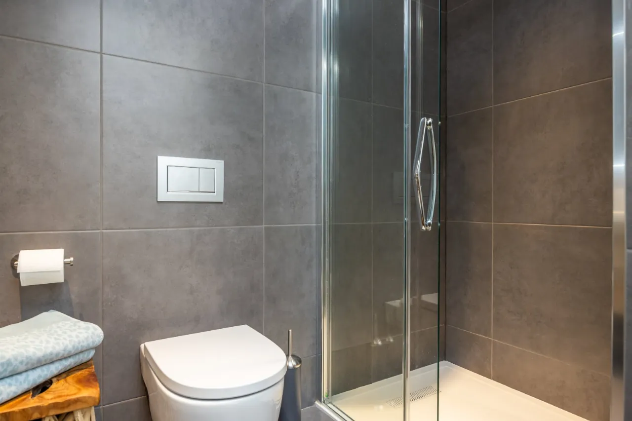 Drench shower to side outside. Walls to the rear for complete privacy.