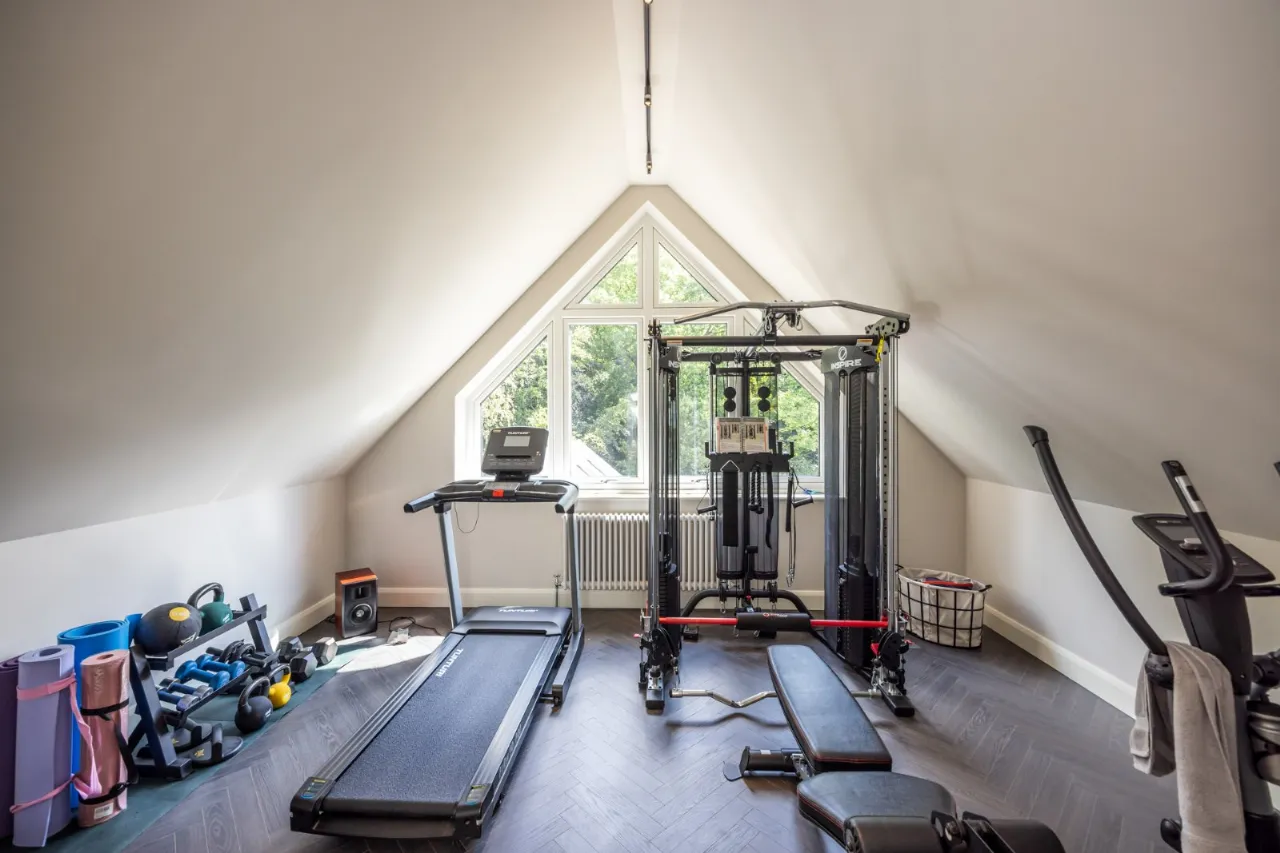 Built in storage cupboard with Vent-Axia air purification system, windows to front, radiators, plenty of breathable space - currently used as a home gym with an array of equipment.