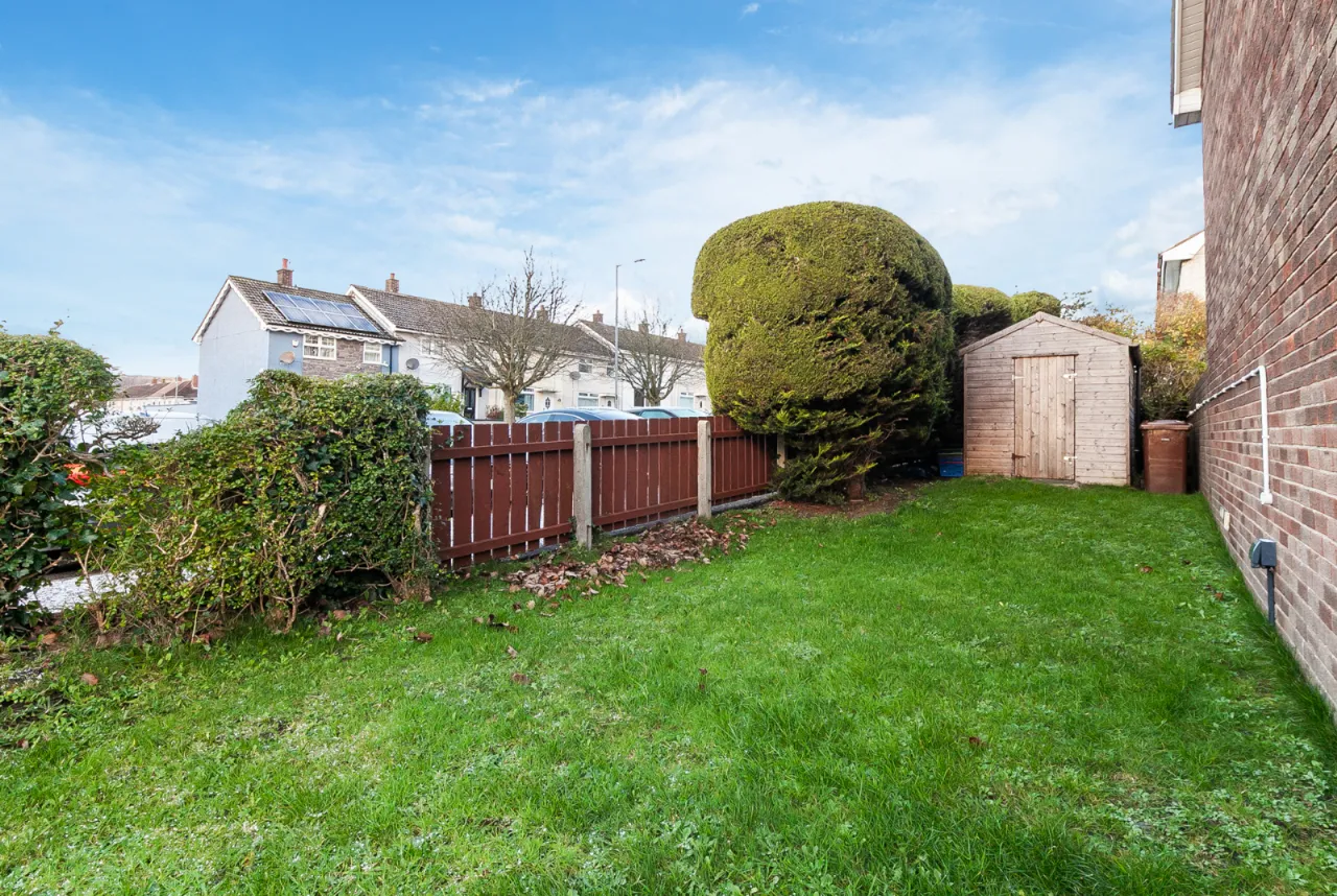 Excellent degree of privacy with garden laid in grass with bordering hedging and a shed.