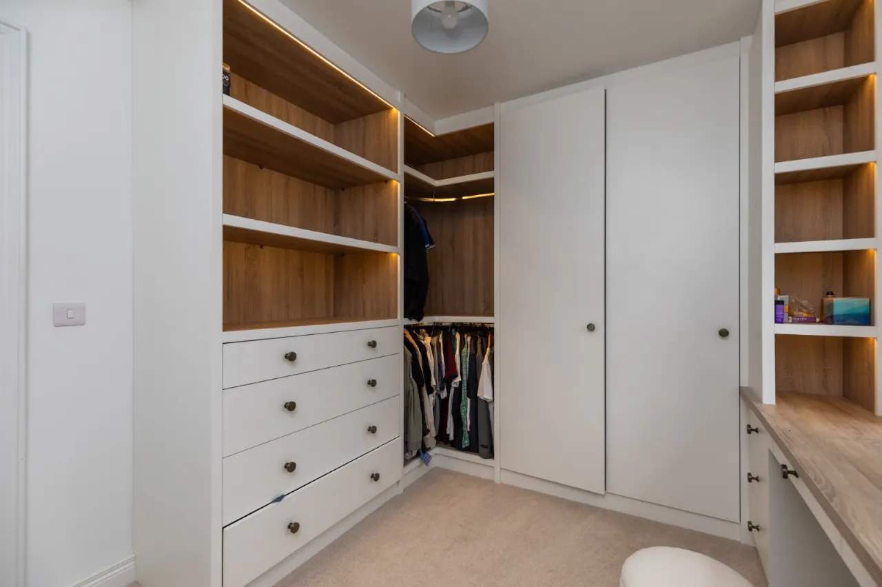 Several upgrades to the original specification including worktops and bespoke built-in furniture