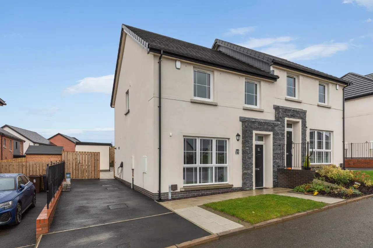 Tarmac driveway to the side with paved path. Good sized enclosed rear garden in lawn with paved sitting area. Large Outside home office