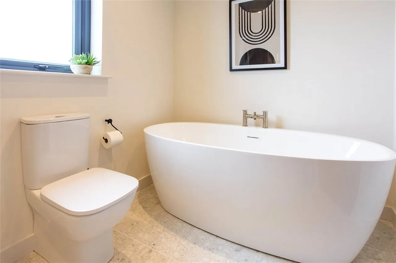 Tiles to bathroom floors, showers and splash backs. Tiles to cloakroom and utility floors (where applicable)