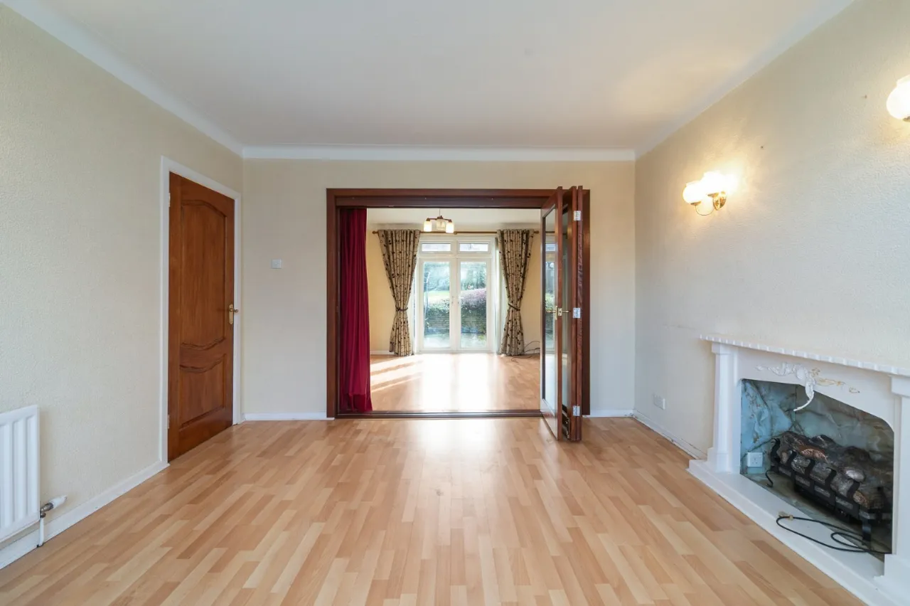 French double doors to rear, wood laminate flooring.
