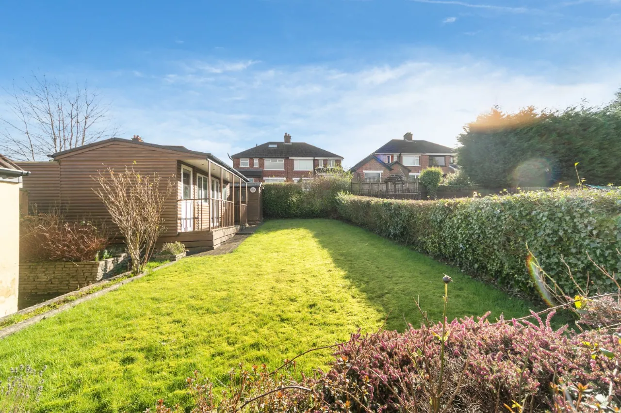 To the front is a driveway with off street parking and garden laid in lawn.