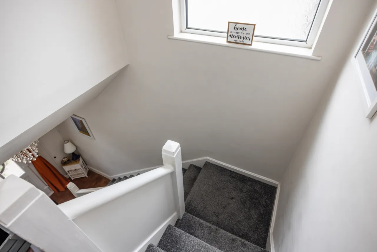 Under stairs storage. Low flush WC, wash hand basin with mixer taps.