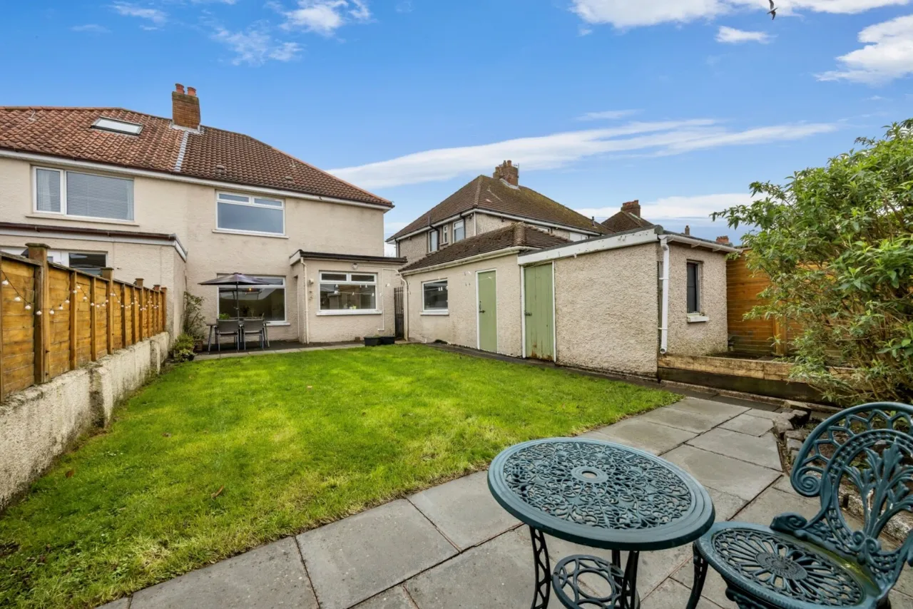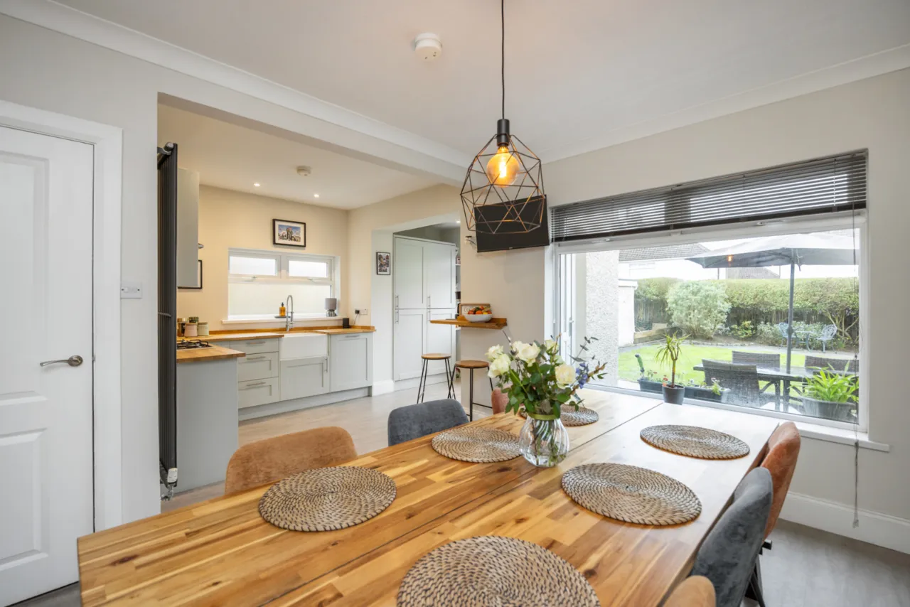 Outside is a paved patio area and garden laid in lawn with South Westerly aspect enjoying afternoon sunshine.