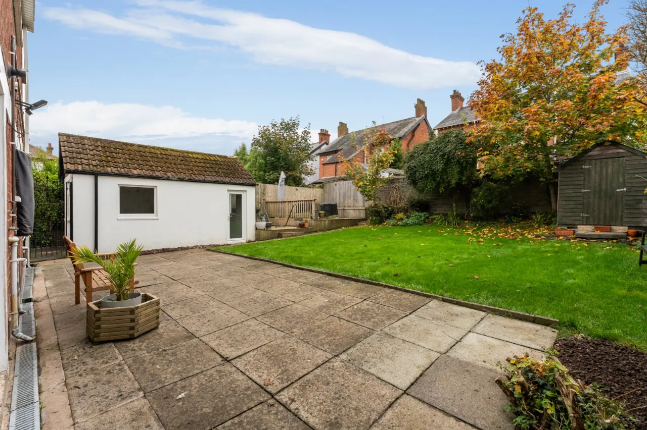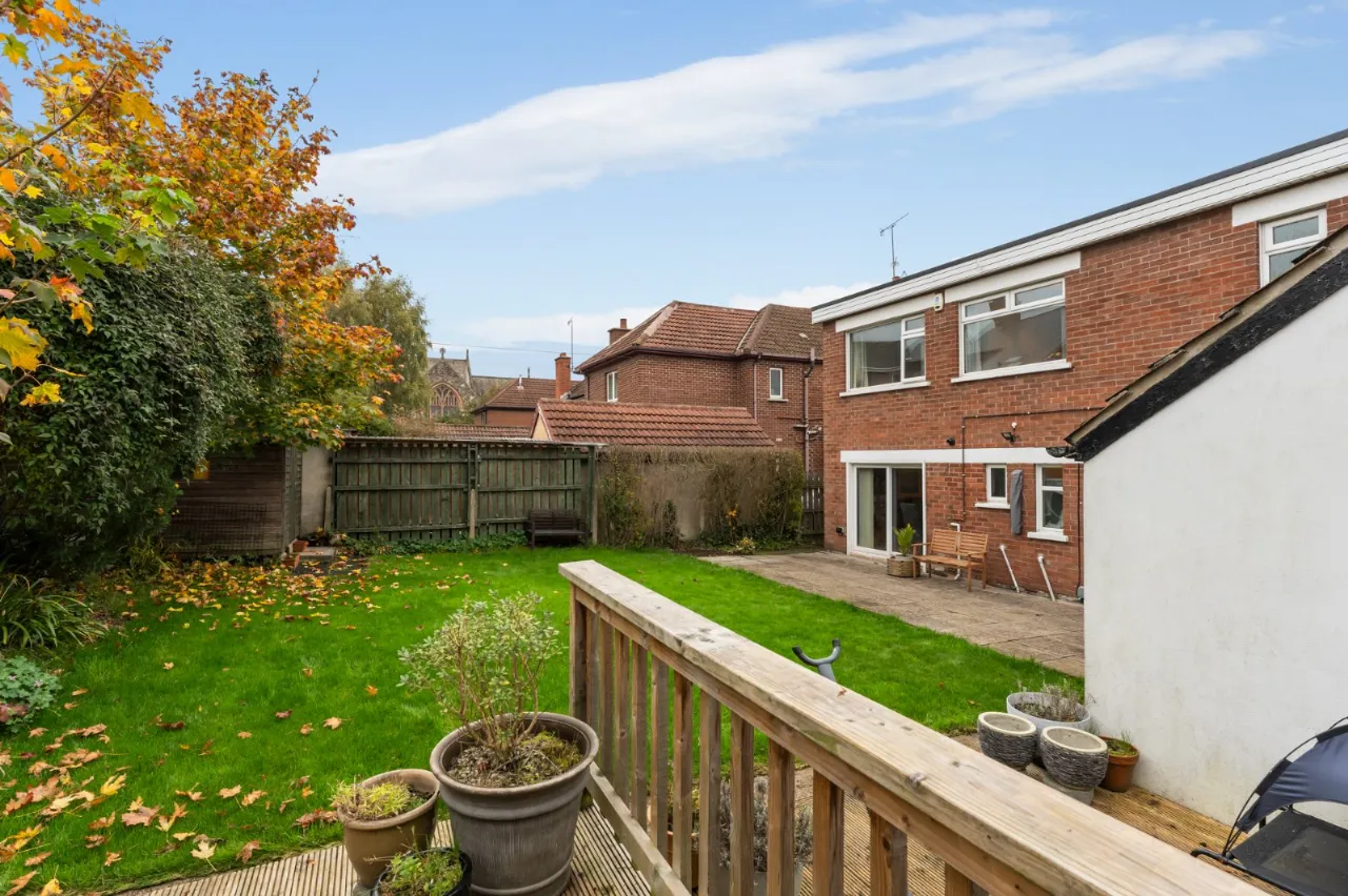 Fully enclosed South/West facing rear garden with paved patio area, garden laid in lawn, raised decking area and an excellent degree of privacy. Outside tap, light and electric point.