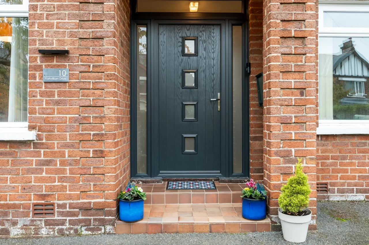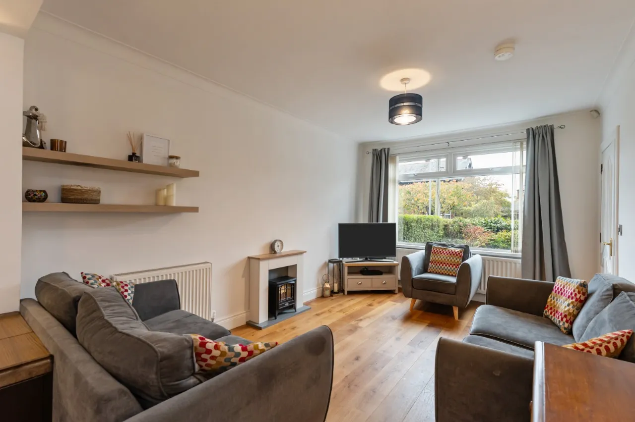 Driveway parking to front for up to 6 vehicles, front garden with pleasant range of shrubbery, hedging and mature trees.