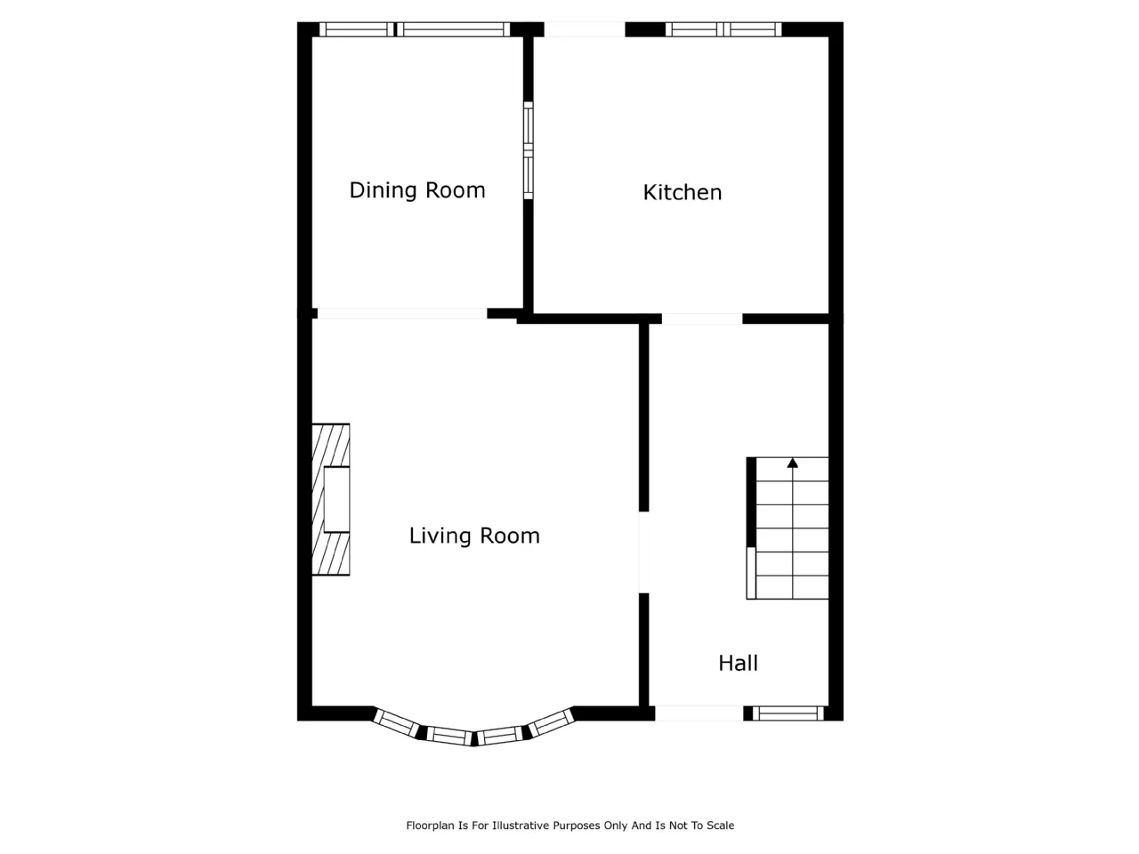 Feature bay window, corniced ceiling and feature fireplace, arching into dining area.