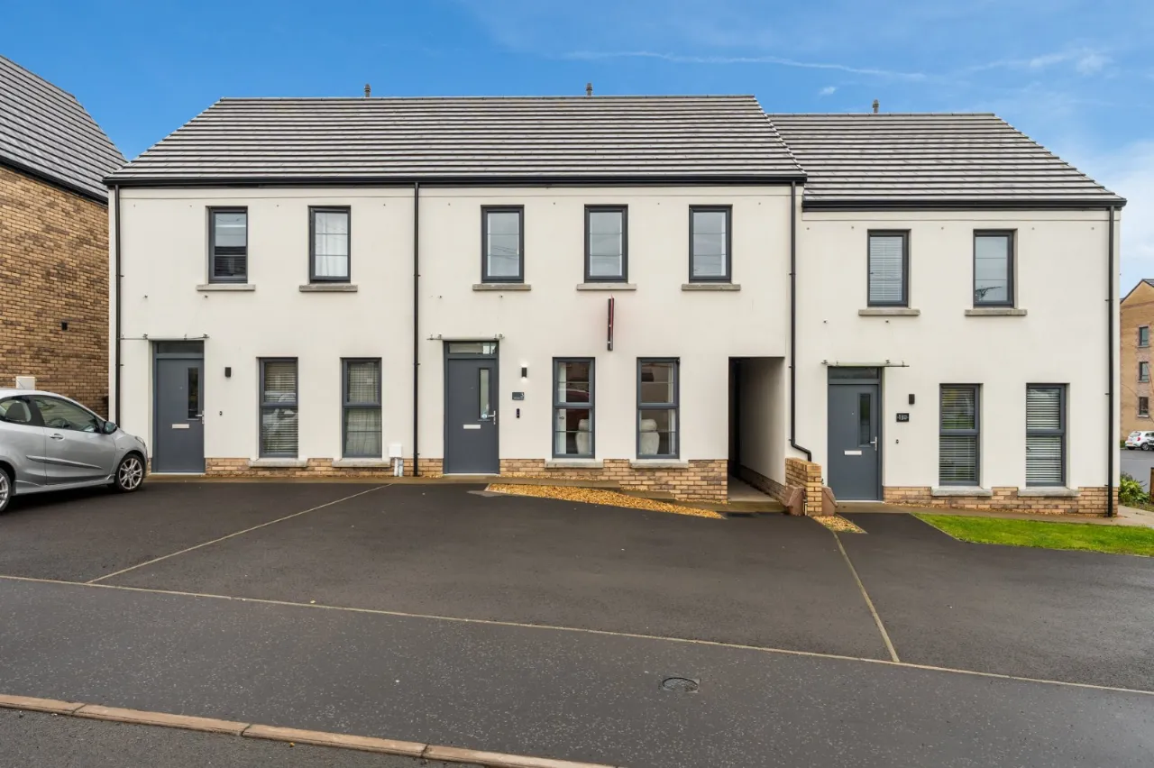 Gardens to front in pebble covered flowerbed and paved path in enclosed garden laid out in modern paved patio and path, large pebble covered patio ideal for family get togethers, garden shed, fening, outside light, outside water tap, access to side for pedestrians.