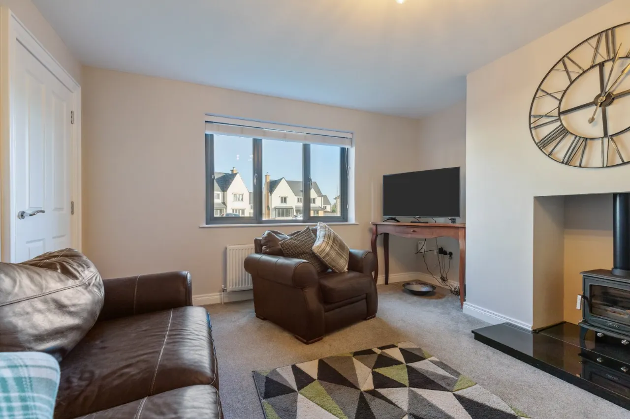 Feature fireplace, wood burning stove, granite hearth, TV point, Superfast Broadband Fibre connection.